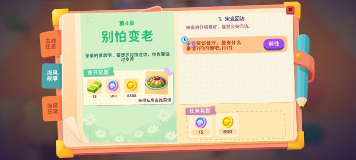 30级海风故事,找不到宋瓷,1楼和3楼都没有。以及餐厅大门的皮肤换不了!!!只有买大门皮肤的时候能换上!买完换不了其他的皮肤!好难看#百味食光bug