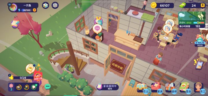 官方出Bug了,为什么有一桌的餐具没人收,而且没有出现收拾餐具的图标。另外,我举办了一个宴会,一直显示还差一个,另一个一直坐在哪里,不动#百味食光 #百味食光测试 #百味食光bug