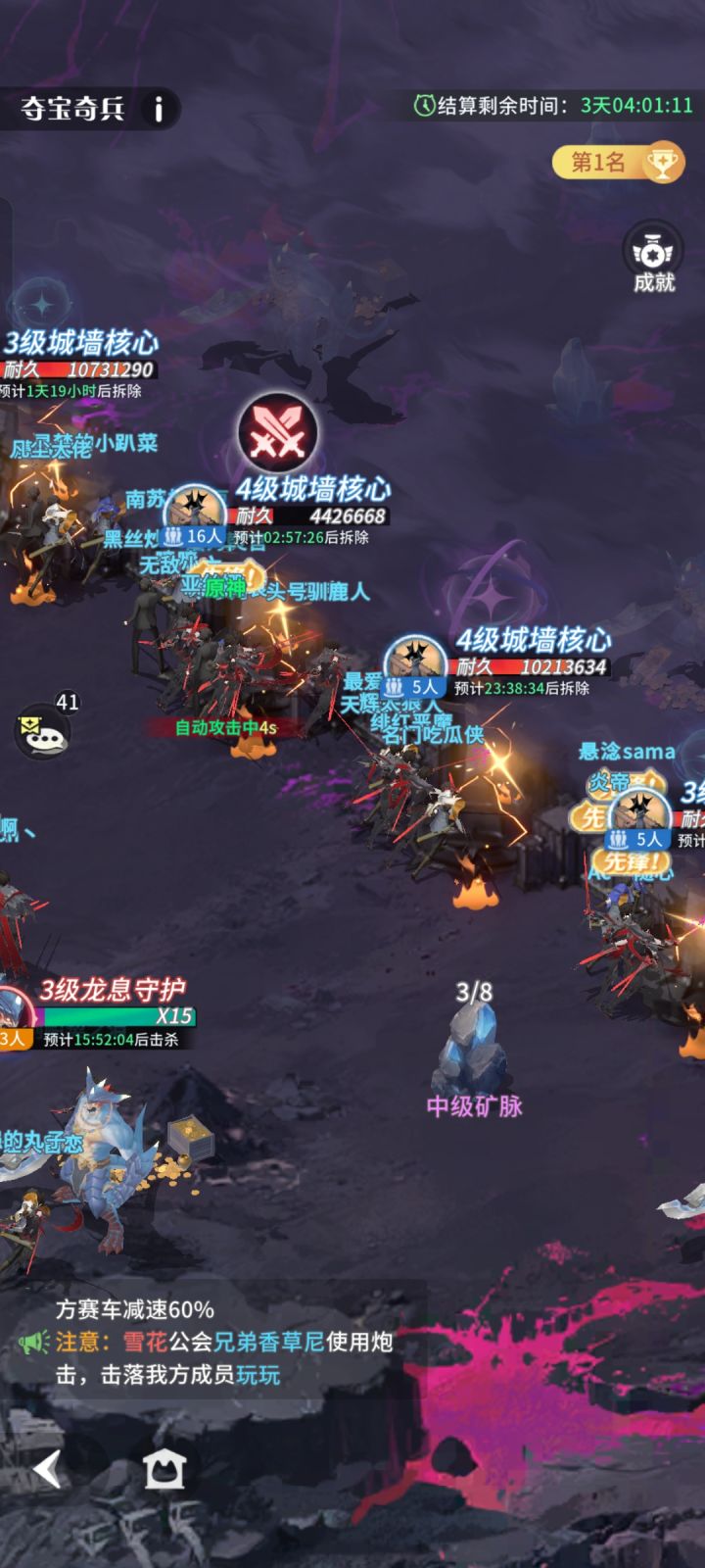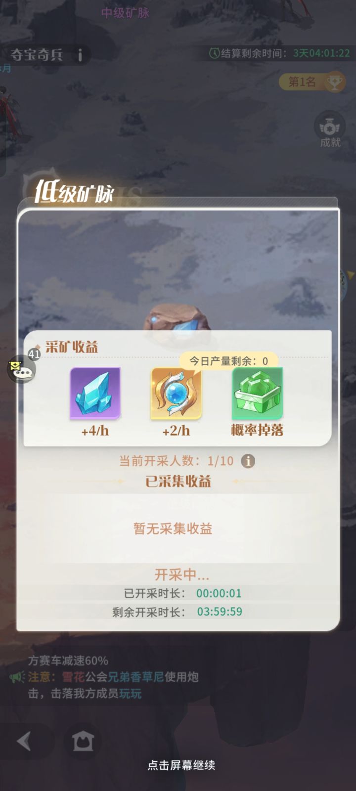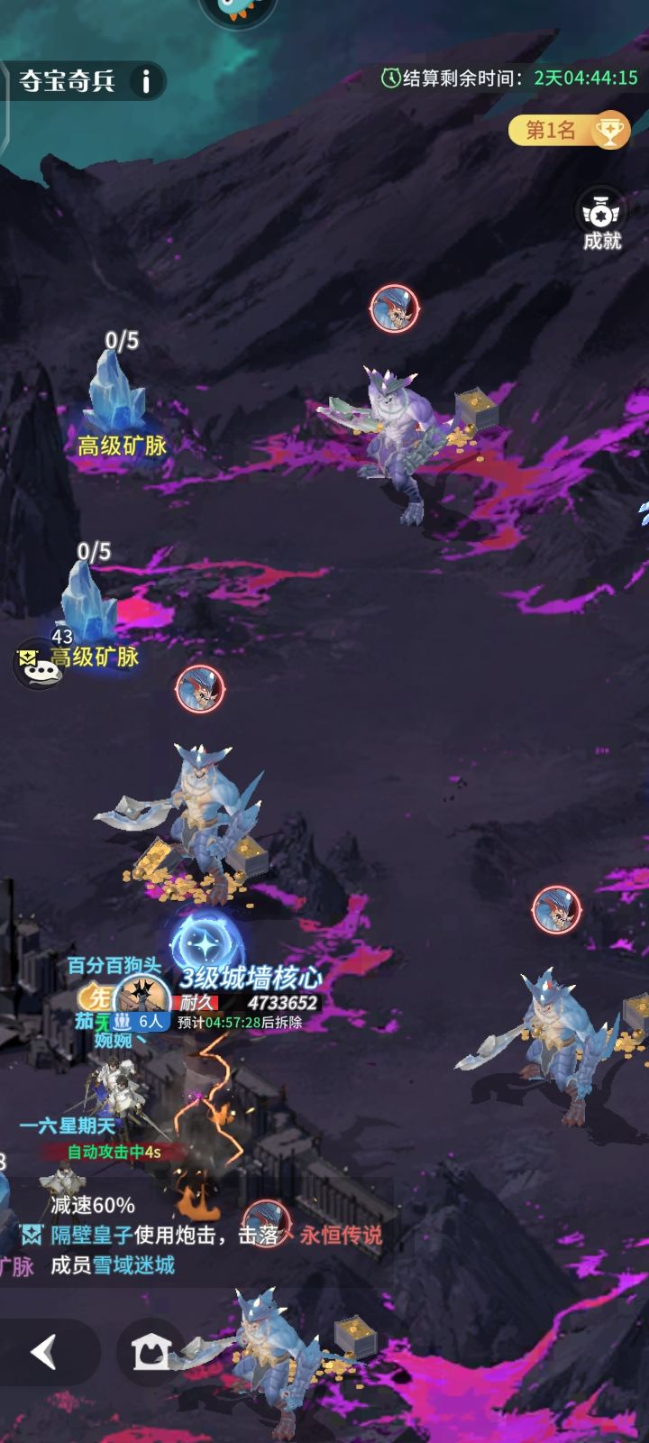 #百媚创造营第二期 夺宝奇兵是工会资源的重要出产地,工会贡献,源石,守护生星,核心,校准仪,充能石,应有尽有。新版夺宝奇兵,工会成员如何最大化拿到奖励呢?下面我会详细说明。 每周更新第一天上线,直接点个初级矿脉挖,新版夺宝奇兵挖矿不限制时间,有就挖。然后别急着打怪,所有成员都先去拆城墙,拆了城墙才有更多矿脉,还有个中级矿脉。拆完第一堵墙直接拆第二堵,这样第二天上线能直接挖更多中级矿脉。墙全拆完
