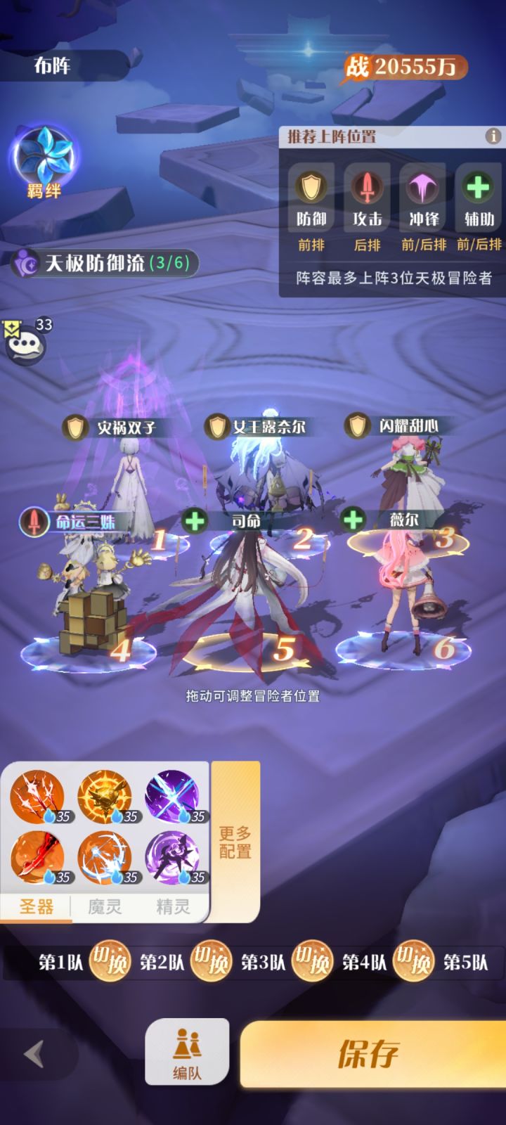 #百媚创造营5 极夜已经容不下梦魅这尊大佛了,因为这俩战斗逻辑是反的——一个靠肉加奶打消耗,一个主打残血反击,那要是一口给梦魅奶满,岂不是直接变花瓶?于是新配队就非常邪乎了,每个队伍都有三个以上的阵营,只能说是超绝混编队一队:双子,女王,甜心三姊,司命,薇尔司命薇尔超绝奶量,一口灌满一个三姊选蔷薇羁绊,大幅提高个人输出甜心完美羁绊工具人,激活双子buff的同时,还能将女王和三姊的羁绊