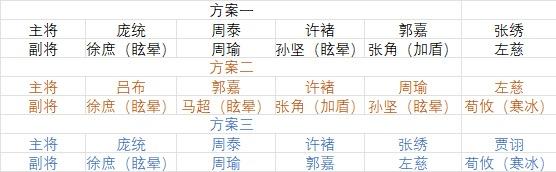 前言:仅适合0氪或微氪前期哪个武将星高就用谁,大概经过一个星期的抽奖及各类活动后会累积一定的资源,届时就要考虑后续阵容搭配的问题了;相对来说一个确定的整容足够你玩到退游阵容一:周瑜、孙策、吕布、左慈、郭嘉分析:这一套前期相对难受,因为孙策s1后期才会相对开始发力,郭嘉没有觉醒前需要许褚搭配,综上如想郭嘉c或者孙策c的话可以培养这一套阵容二:周瑜、左慈、郭嘉、吕布、许褚分析:这一套比较适合