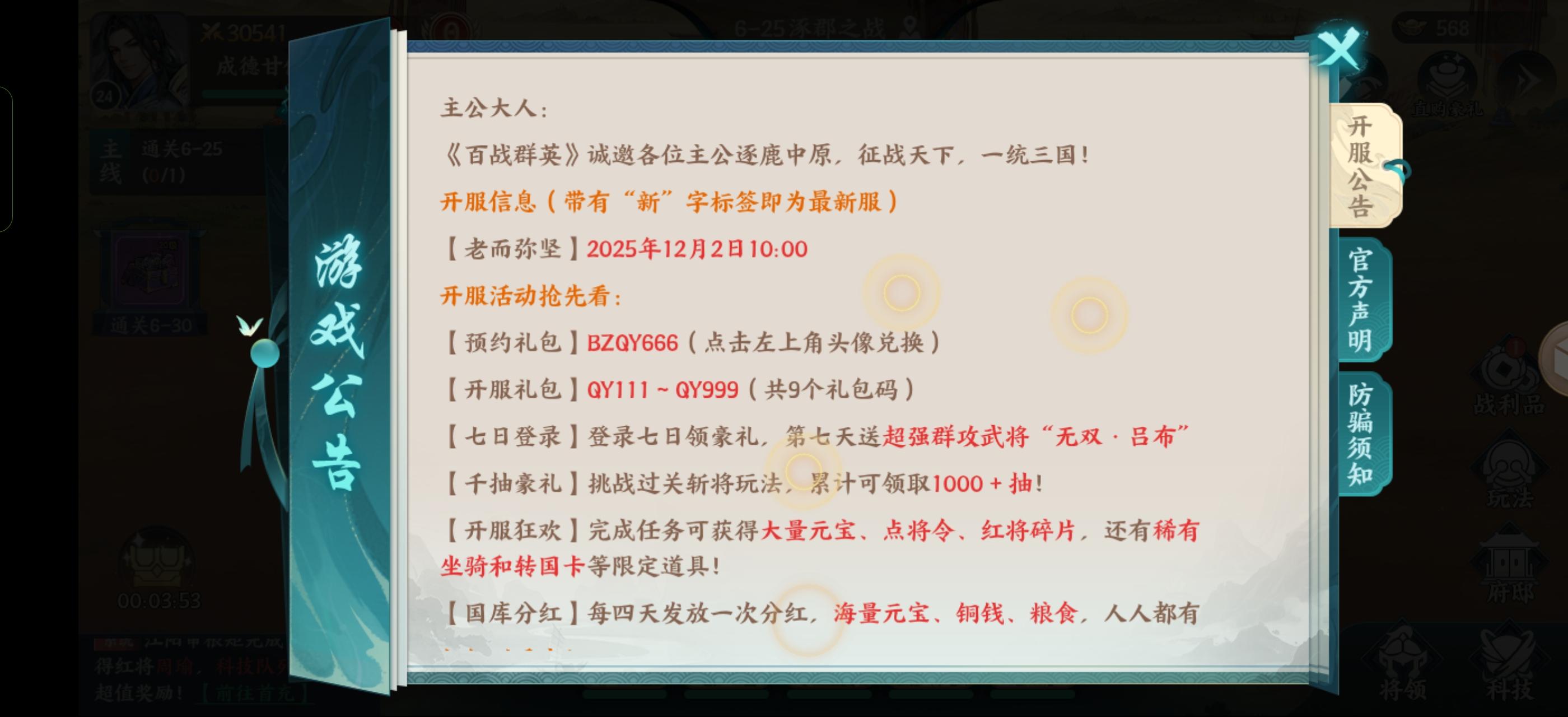 哈喽主公!《百战群英》11 月 12 日公测无需激活码即可畅玩,三国乱世等你来争霸~ 这份整合了公测福利、强力武将、新手养成全要点,帮你快速起号、领跑全服!一、公测专属福利:白嫖300 抽 + 无双红将开服礼包码:QY666、QY777、QY888,点击左上角头像即可兑换元宝、点将令等道具。七日登录福利:累计登录7 天免费领取超强群攻骑兵 “无双・吕布”,直接解锁核心输出。百抽豪礼:挑战“