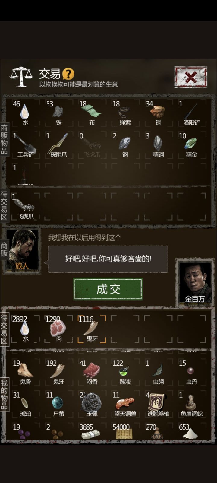 第一步:先用黑折子换装备 第二部:再用差不多数量黑折子换回之前的黑折子外加一堆材料 第三步:重复第二步 直到换完除黑折子外商人的所有东西 最后用第一步换的一件装备把黑折子换回来(白嫖完成) 注意:猎人无法使用此方法#盗墓长生印金百万金牙 #盗墓长生印