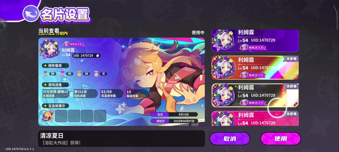习惯性点开自己主页看,结果发现了新上的名片 土豪气息扑面而来。 那顺便问一下,这一二档分别要充多少 #盲盒派对攻略 #盲盒派对