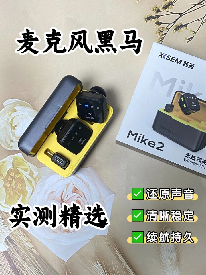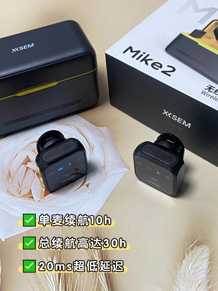 随手记录一下,最近用的无线麦——西圣Mike2无线领夹麦克风🎤 这个麦真的小巧,发射器是方方的设计,配色是低调磨砂黑+一抹亮黄,单麦10g,拍一整天也不会累👕 让我决定安利的还是它的收音效果,支持48kHz/24bit高清采样,信噪比70dB,声压110dB。简单理解就是讲话录出来不会糊,声音干净清楚,不会被周围杂音盖住。它还搭载了四重降噪算法+AI DSP芯片+RS反馈,在我这种室外环境录音