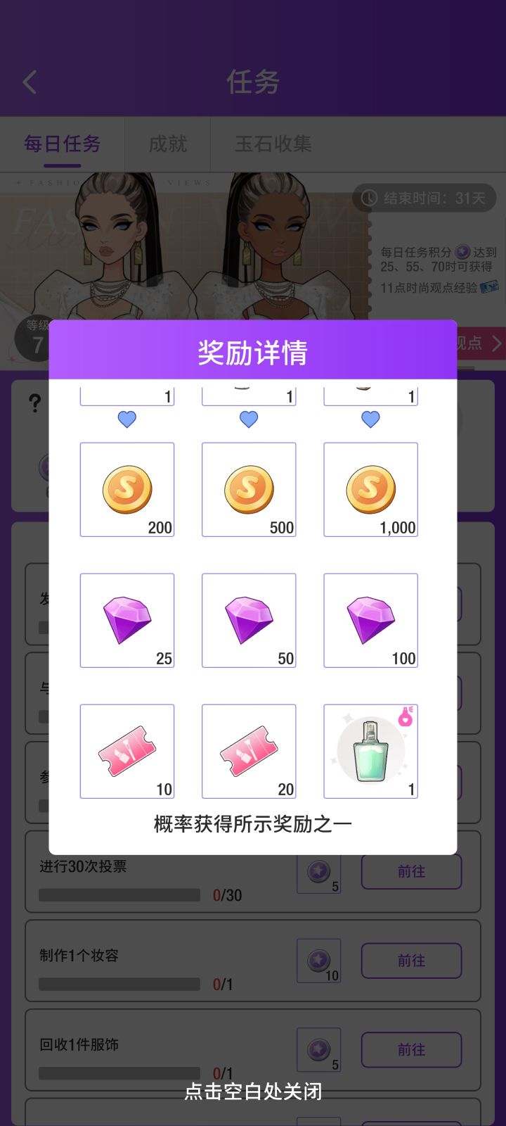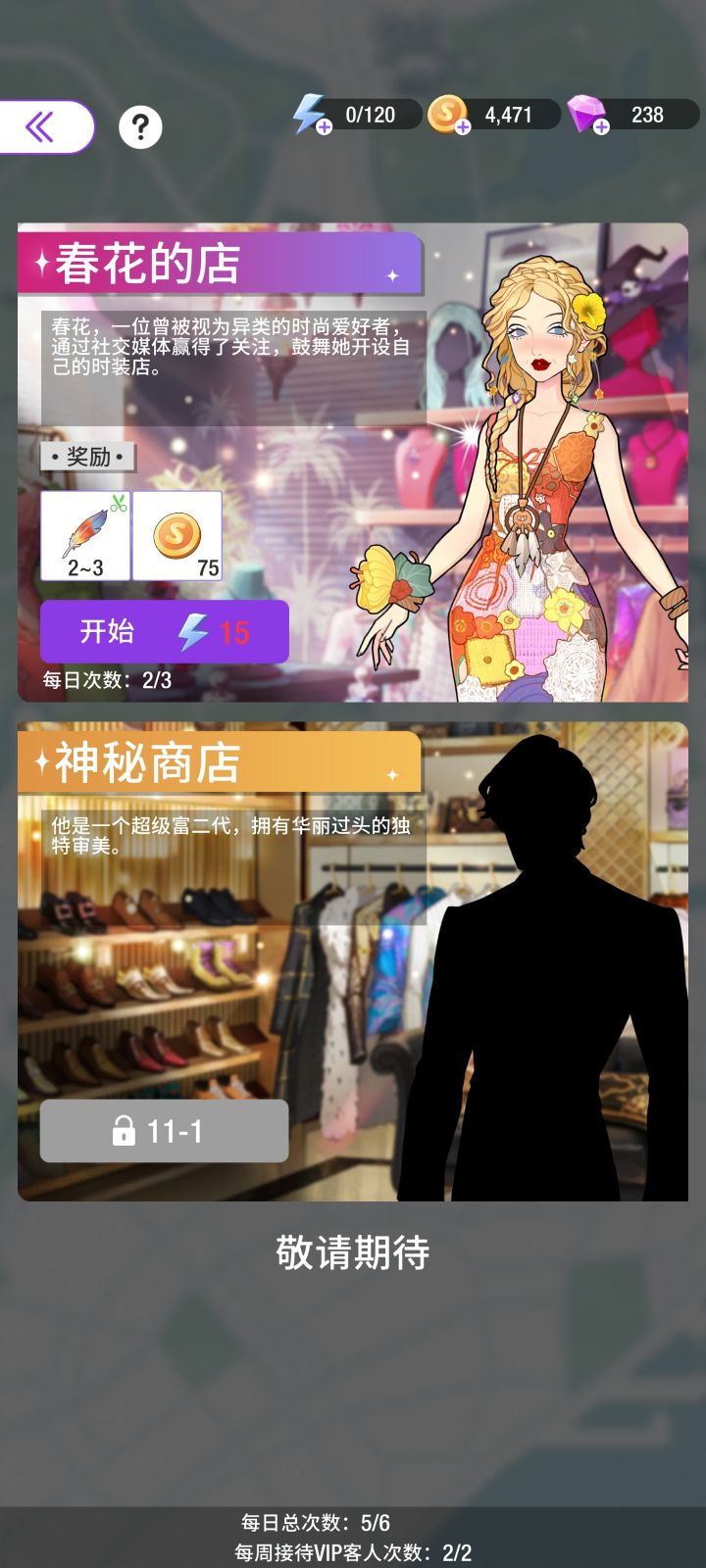 换装和剧情爱好者试玩两天说下感想画风很喜欢,但根据现有的情况来看公测没得玩第一,体力回复速度慢的我都可怜我自己,睡了一晚上起来一看才回了80,但刷材料一把就要10第二,玩过这么多游戏没见过做到最后一档日常奖励给的是盲盒,钻石获取途径少之又少,过关衣服一件几百钻买去吧第三,材料硬性卡关,一件裙子的材料至少五天,这还是内测有送的钻的前提下能买体力回复,买体力第一档就要60钻,第二档90钻, 第