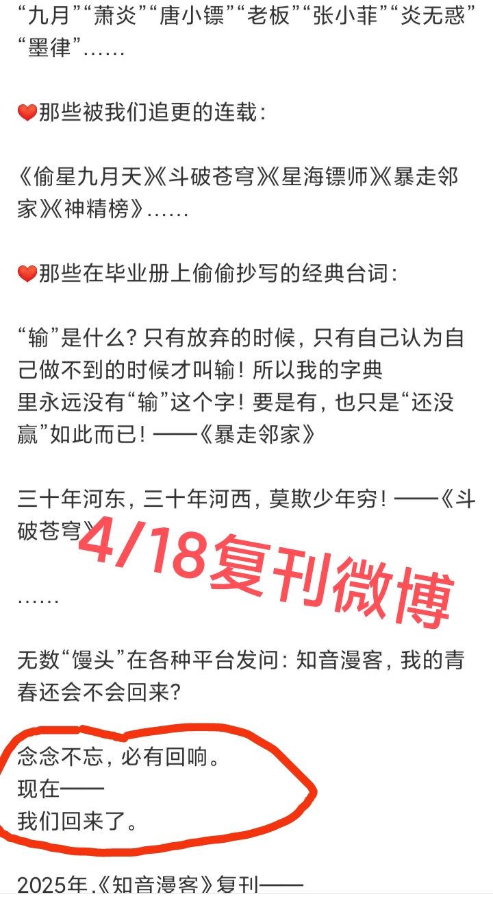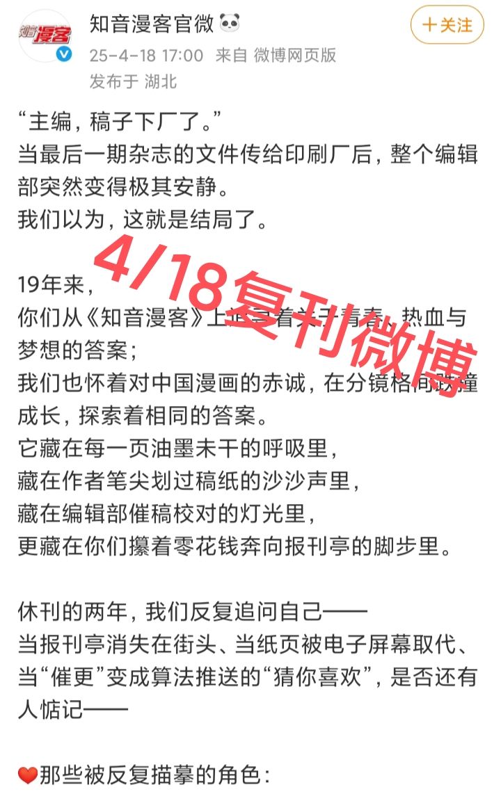 声称要复刊的《知音漫客》删微博了❓❓❓