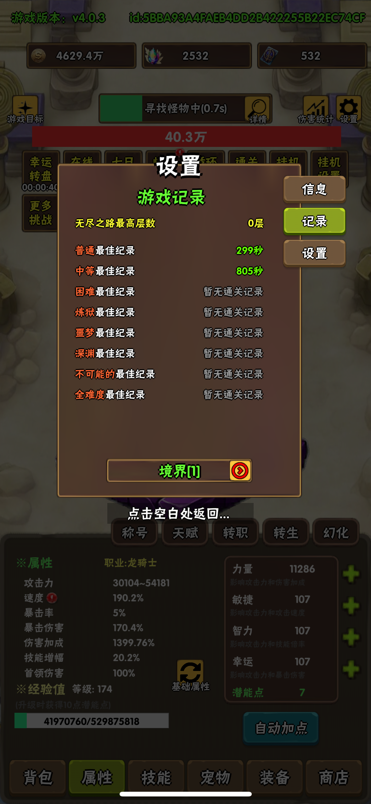 无尽175装备等级 25w层 宠物两个满 洞窟45个怪 装备五个400星等下个月再发个记录贴 #破日开天 #破日开天攻略 #破日开天更新