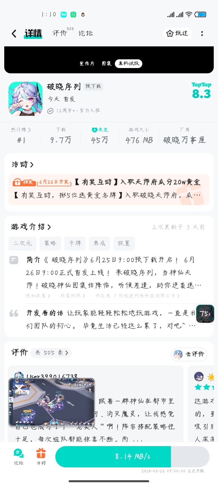 #破晓序列0626公测 预约游戏+评论预约截图 即可参与抽奖!定制名牌,工作必备~!东方都市神仙冒险RPG《破晓序列》6月26日火爆公测,紫霞准备了【定制黄金名牌*5】,揪5位天师领取好运!单个名牌重量5g,总价值3000元~!6月26日公测当天开奖!赶紧预约破晓序列,一起入职天师府当最强天师吧!#入职天师府瓜分20w黄金 (P.S. 兑奖官方需核查6/26前游戏预约信息,记得保存预约截图
