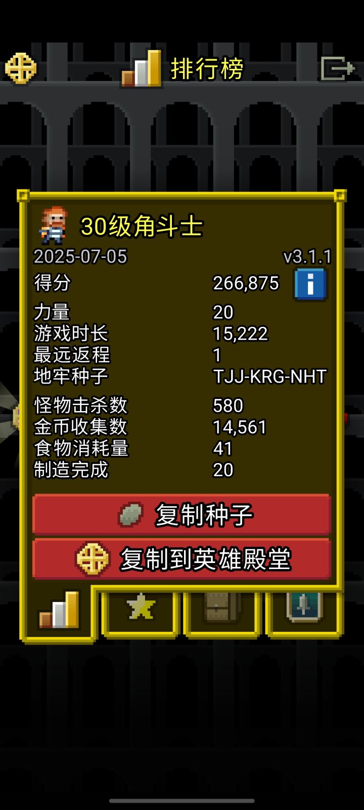 种子想玩的可以复制:TJJ-KRG-NHT感觉这个种子对新手还是蛮友善的,幽妹给三级链甲可以过渡前期,其他装备的含诅咒概率很低。最后:对于刚回归的牢玩家我来说看到地牢还能陆续更新我是很高兴的,因为看到童年游戏还能繁荣昌盛,之前没有网游的时候一玩就一天那种成就感是不言而喻的,这次回归看到这么多改动是惊喜的,更多的是不知所措,祝地牢越做越好,越做越大#破碎的像素地牢 #破碎的像素地牢wiki #破