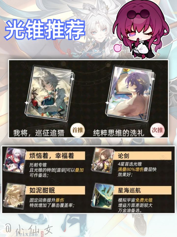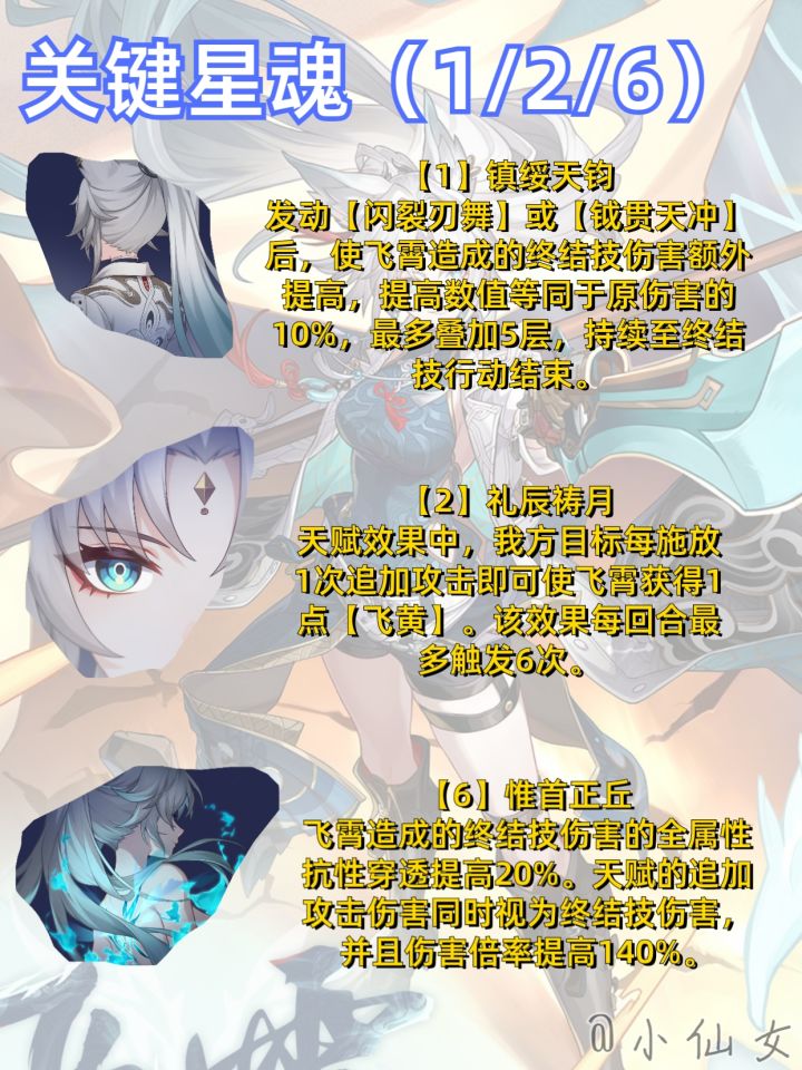 UID:104719728【角色TAG】追加攻击、单体爆发【角色定位】飞霄是通过【飞黄】施放终结技的输出型角色,我方全体攻击即可积累【飞黄】。此外,我方发动攻击后,飞霄还可以对目标发动追加攻击。大家都抽到飞霄了吗?飞霄是版本大主c,抽了绝对不亏,搭配知更鸟更佳,混沌、虚构畅通大家赶紧练起来吧#碧羽飞黄射天狼 #碧羽飞黄射天狼打卡 #崩坏星穹铁道攻略 #星穹铁道攻略 #崩坏星穹铁道 #崩坏星