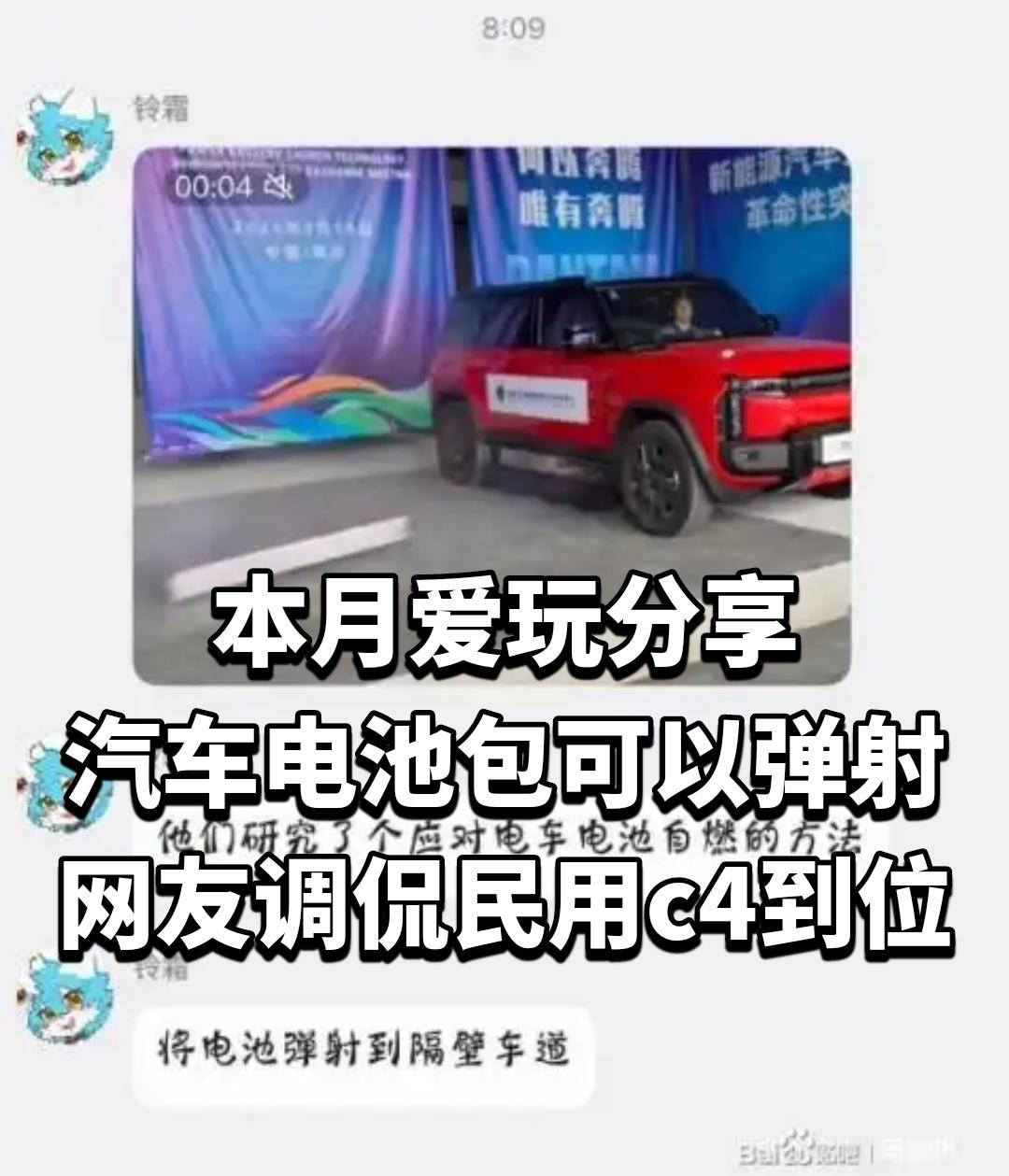 #生活杂谈 #热点事件 #社会时事 #数码科技 省流: 某协会出现了一种很新的新能源动力电池弹出技术,当汽车电池热失控时将自动弹射,可实现1秒弹出。 相关设计可能初衷是好的,保障人身安全嘛 但用在实际生活中,可能会存在那么点问题 目前,部分网友对相关技术展示出了戏谑调侃态度,有网友调侃这是民用c4到位了
