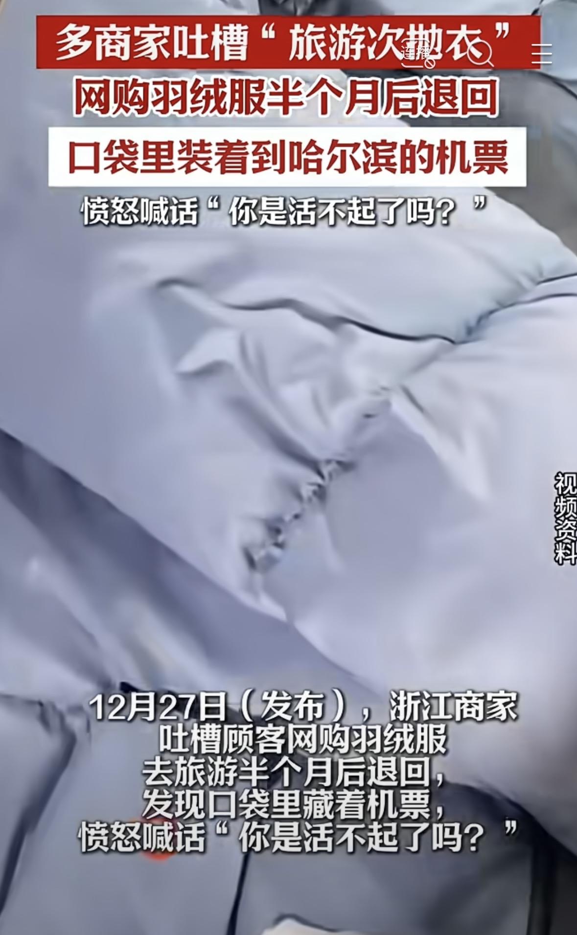 多次在退货羽绒服中发现使用痕迹