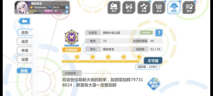 最近社团活跃度低下,又到了招新人的日子了,赶紧来点新人吧,团里咸鱼大佬萌新来着不拒,只要别两周都不打一次团就行,团里好歹还是可以拿下团本前40%的680水晶的,群里也有大佬解答疑问,要是想打竞速拿本战双实物只要设备够团里也是有门道的,欢迎各位大佬萌新前来加团#崩坏学园2 #崩坏学园社团 #崩坏学园社团招募 #每日一水 #社团 #社团收人 #社团招募 #萌新 #国服