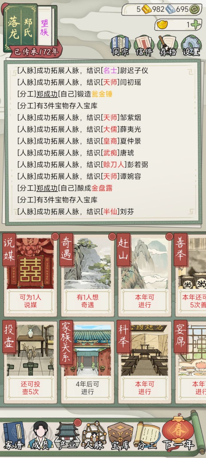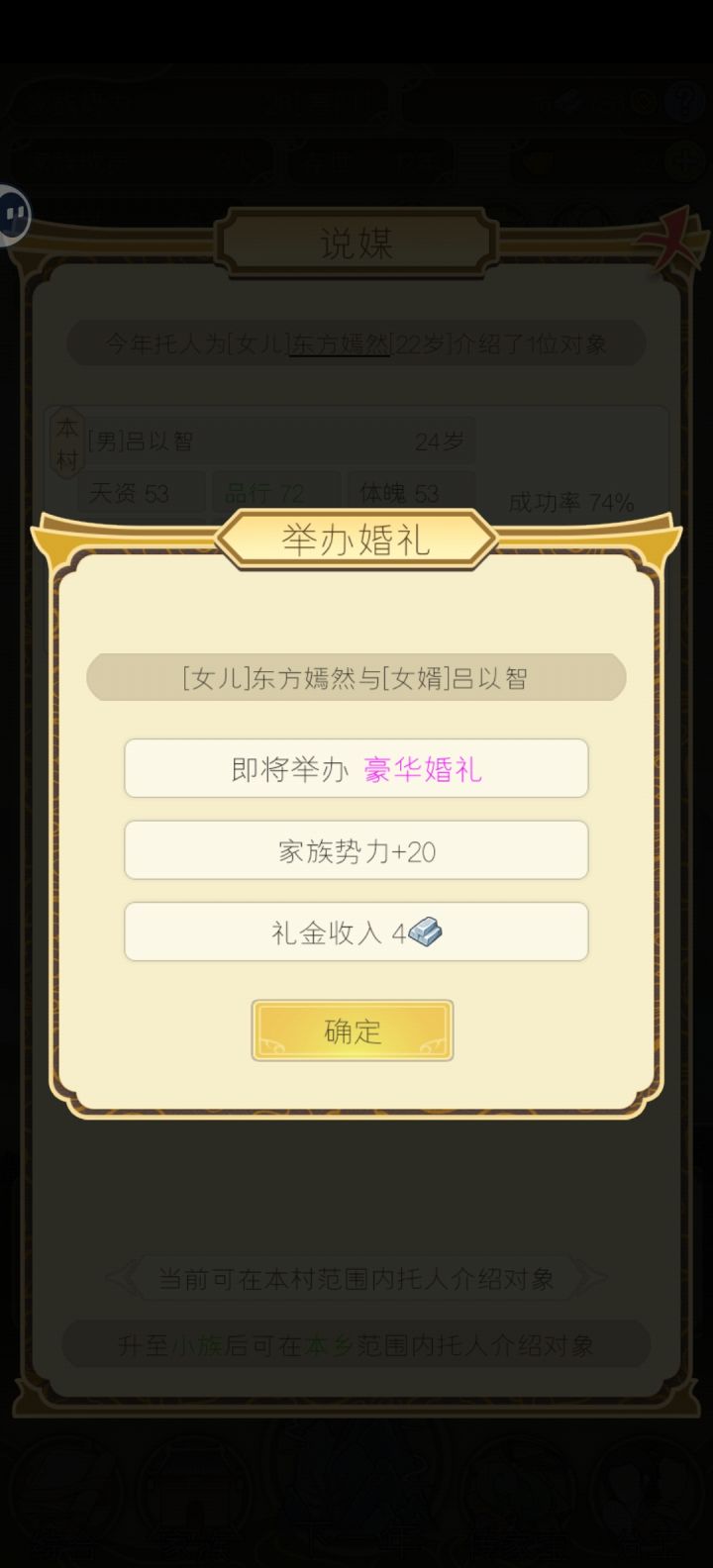 #祖宗模拟器传承 #祖宗模拟器 首先,开局点积极鼓励生育。然后你就能够获得元宝,接下来安排人结婚。前期的结婚率很高,可以都点免费。接下来再用元宝选择婚礼,就能够收获4两或者20两银子#第三次重开 #传承5000年
