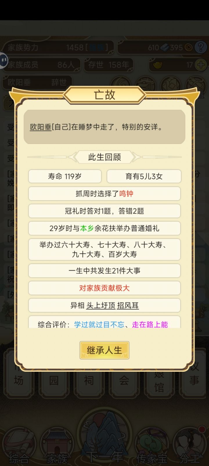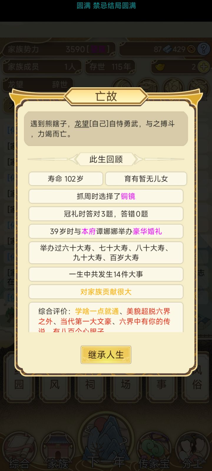 玩成死局了,就想着传承了,没想着后代#祖宗模拟器传承 #发现好游戏