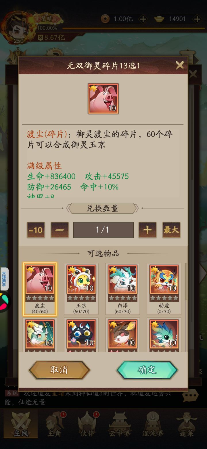 很多资源还没有开,目前卡级在1125,战力还能提升很多,接下来坐等炎帝进场拉满。1走过最大的坑应该就是周活动了,前期有很多周算不明白周活动要消耗的材料一直没有参加,而且为了省元宝也没有买,各位道友可不要像我一样!!2白嫖pvp一定养一只满变金卡女娲,个人感觉很好用,我现在的阵容还是双女娲配锁血飞羽在都天还没有普及的情况下还可以一战,一是鹿可以破牛的破锁血,二是九龙保命,这两个可以和雪花版本的阵