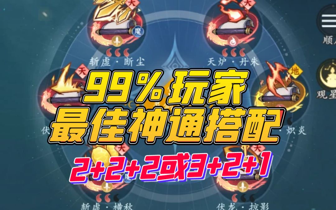 人界纯火,飞升后听说4火2雷伤害更高,现有图片上这些神通,请问各位大佬,现在可以重置了,怎样搭配更好?现在是业+丹+炽+三+霄+蛇#问剑长生 #神通 #飞升 #灵界