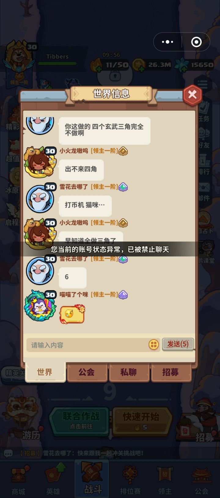 客户端:微信小程序ID:580795941635700583区服:心灵之声27服名字:Tibbers问题:游戏被禁言 禁言一个多月了,能不能解封啊#快来当领主小天使 #禁言 #快来当领主