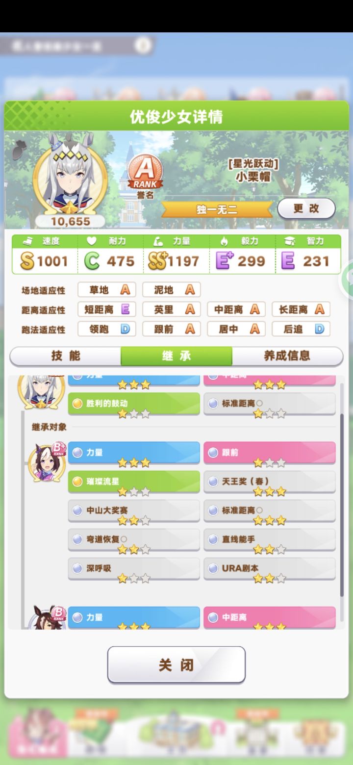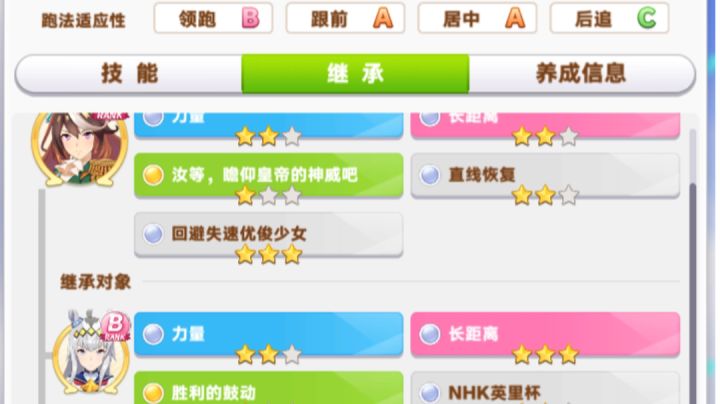 长距离因子3星爸,2星妈,结果儿子才2星。关键距离因子(粉因子)2星也就算了,蓝因子也给2星,最终评价还是B+。真亏。#赛马娘#种马#鲁道夫象征