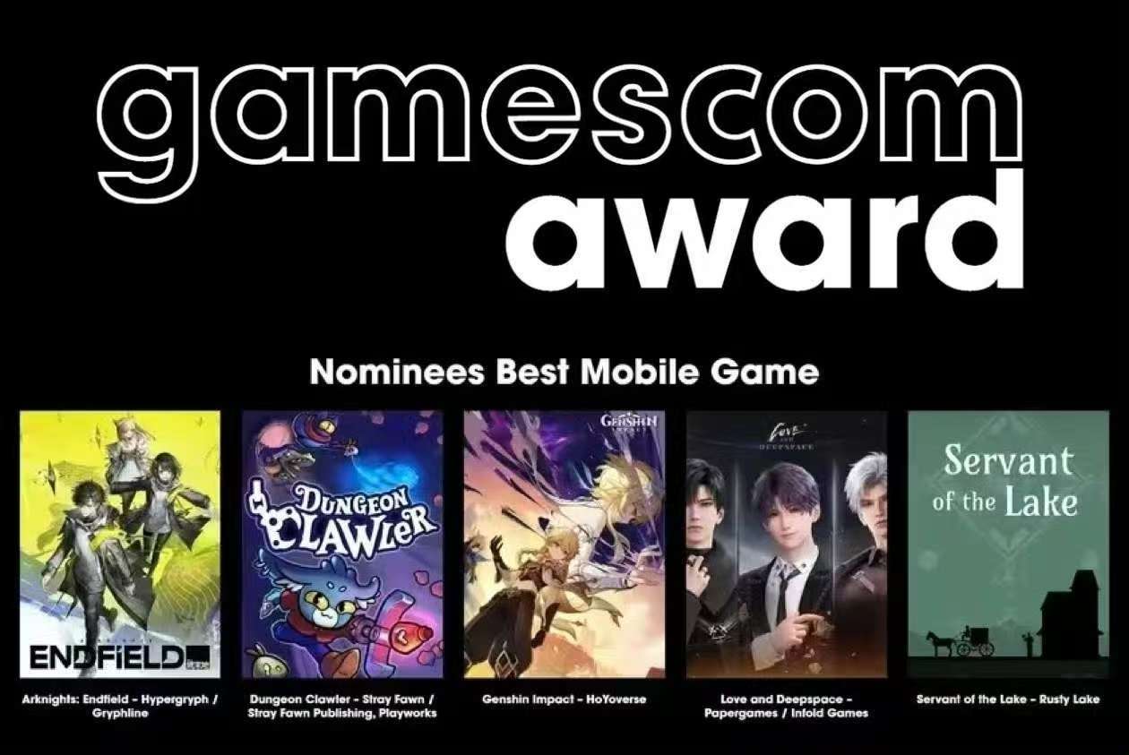2025年8月19日,科隆游戏展「最佳移动游戏」提名 公布! 《原神》获得 2025科隆游戏展「最佳移动游戏」提名!老原又要发原石了?! 所有提名游戏名单如下: 1.《明日方舟:终末地》 2.《抓抓地牢》 3.《原神》 4.《恋与深空》 5.《Servant of the Lake》 绣湖——湖之仆从 绣湖:我?我打高手? #今天游戏圈发生了啥 #资讯评论员 #科隆游戏展2025 #明日方舟终末