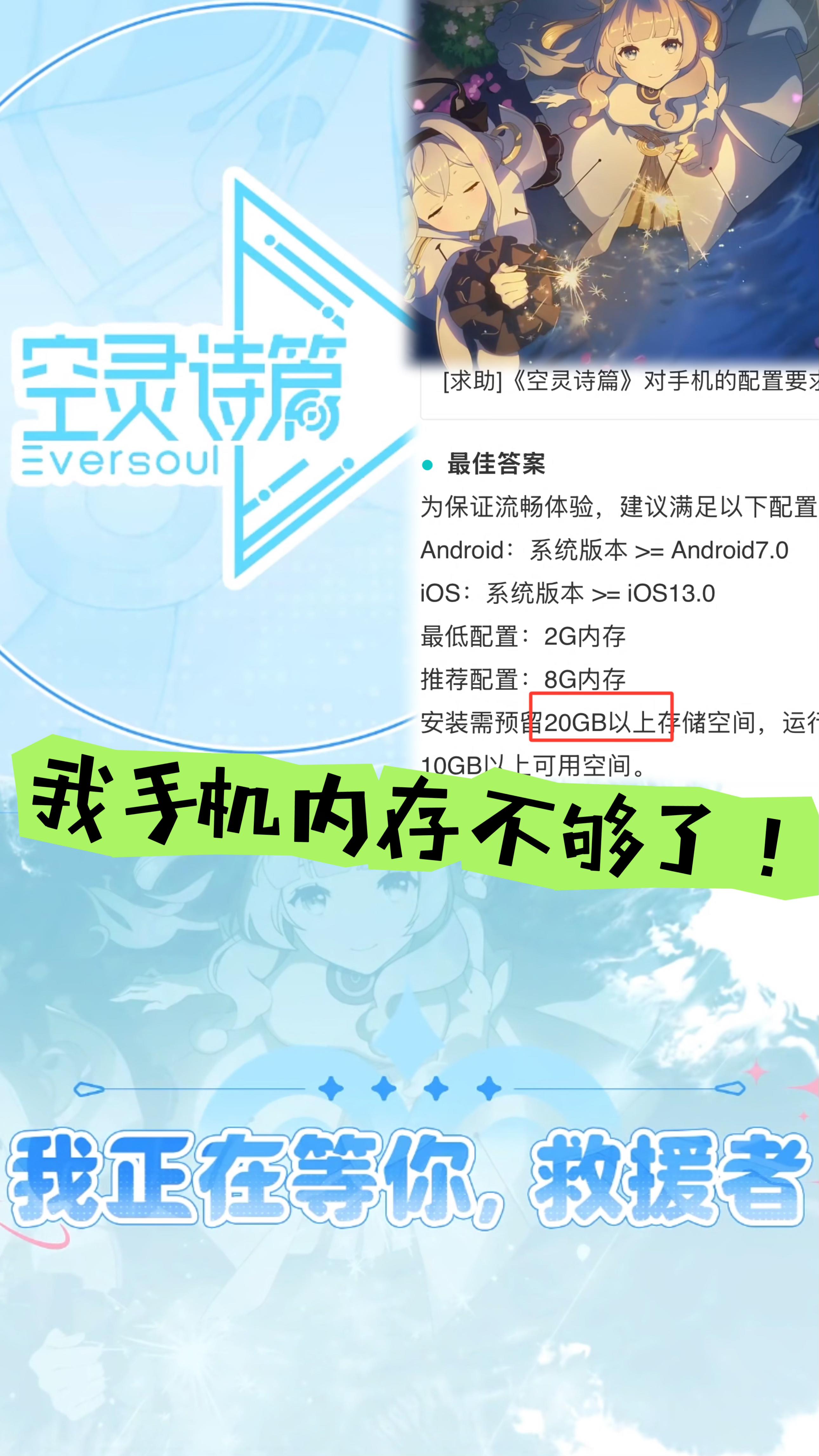 紫龙旗下二次元卡牌手游《空灵诗篇》开启「True End」限时删档测试,却因高额存储需求引发玩家集中吐槽!上线即陷入"内存焦虑"争议。据官方信息,游戏安装包仅3.3GB,但安装需预留20GB以上存储空间,运行时还需保留10GB可用空间,推荐设备内存更是高达8GB。这一要求让不少玩家望而却步,有用户吐槽"删了三个游戏才腾出空间,刚进游戏又提示资源更新",还有中端机用户反映"安装后手机存储告急