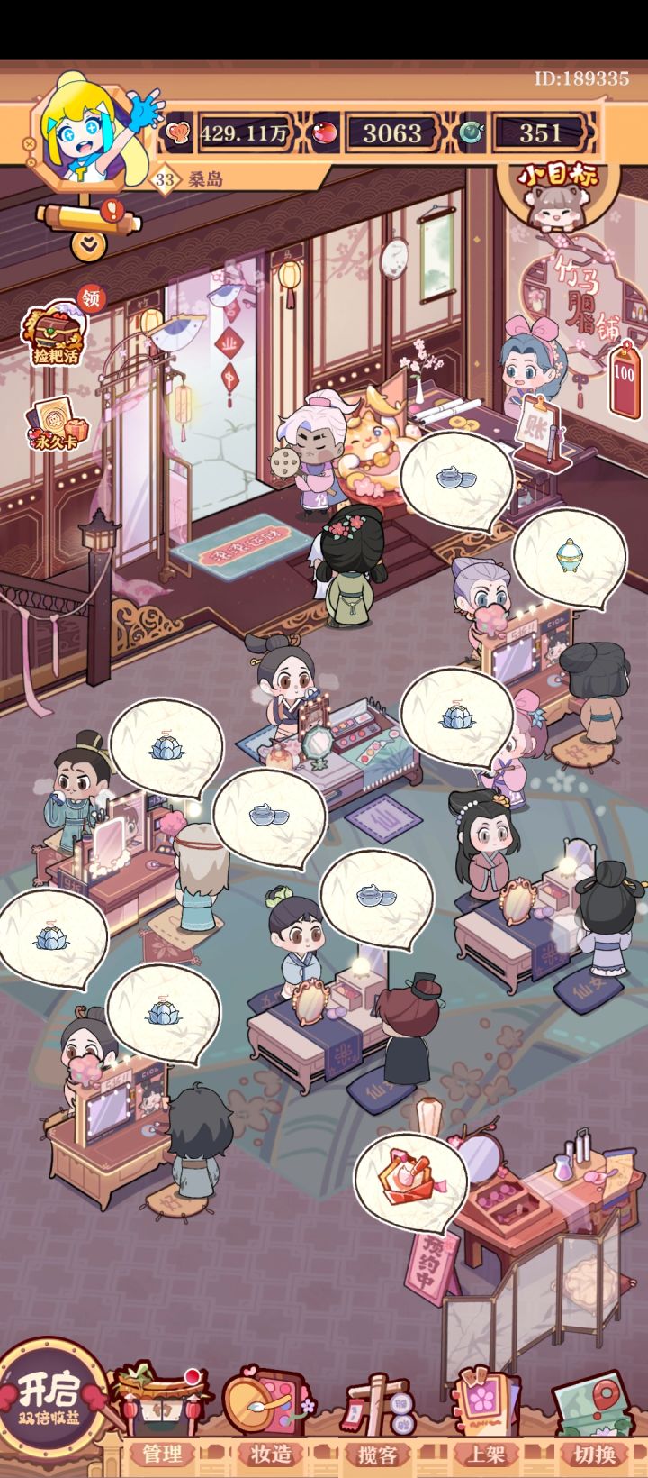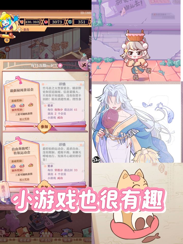 我真的太喜欢这个游戏的画风了,古色古香画面很精致,喜欢这种画风的可以无脑冲。音乐也很棒,搭配上画风真的很休闲。而且主线剧情是以漫画的形式呈现的,这绝对是这个游戏的一大亮点。漫画剧情里有很多很多人物,各有各的特性,故事我真的很爱看。在这个游戏中我们可以扮演女主来到竹马县,作为新手掌柜发展美妆事业,繁华的小县城里面我们能遇到很多幽默可爱的居民,各路奇人异士。常规玩法就是模拟经营,但并不局限于一家店铺