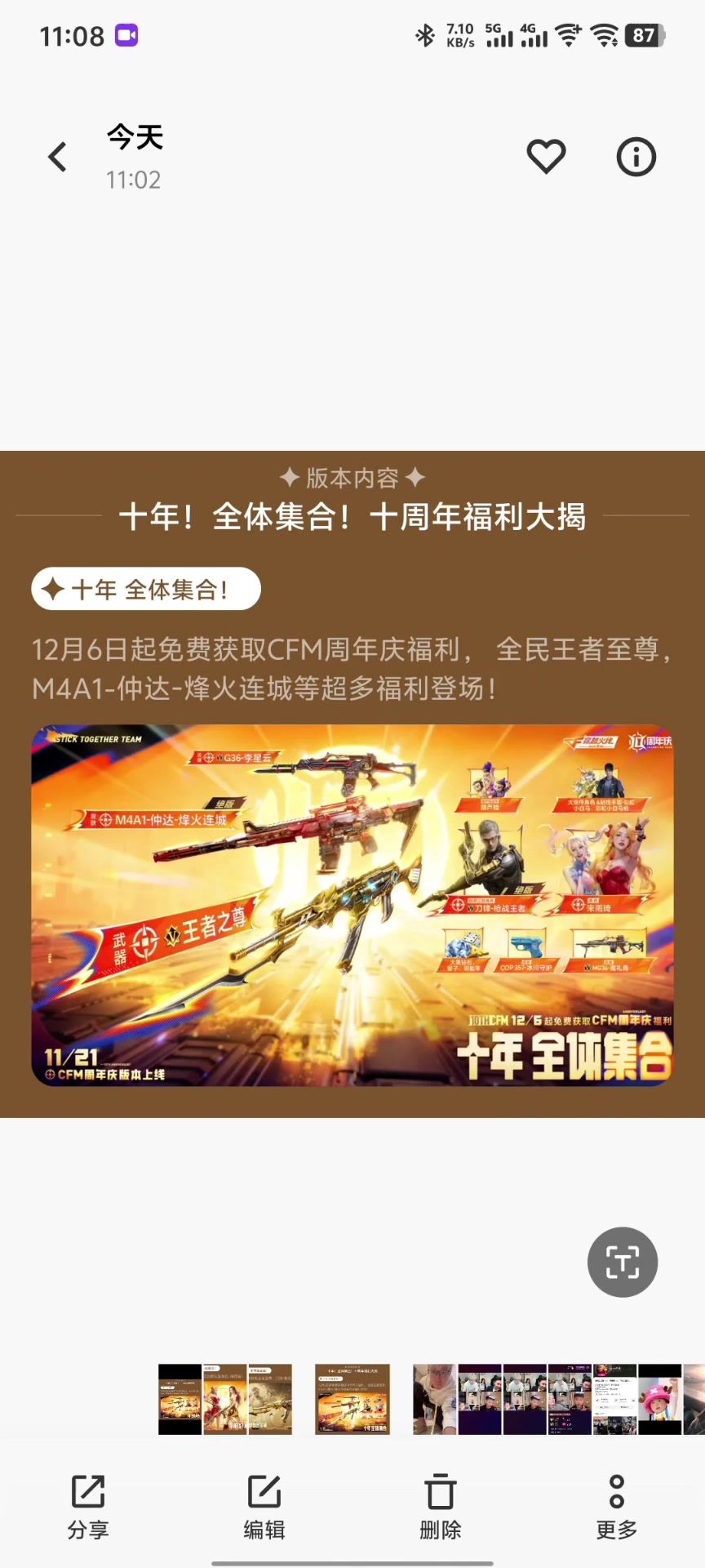 CF手游十周年福利大曝光!全民王者至尊等你拿