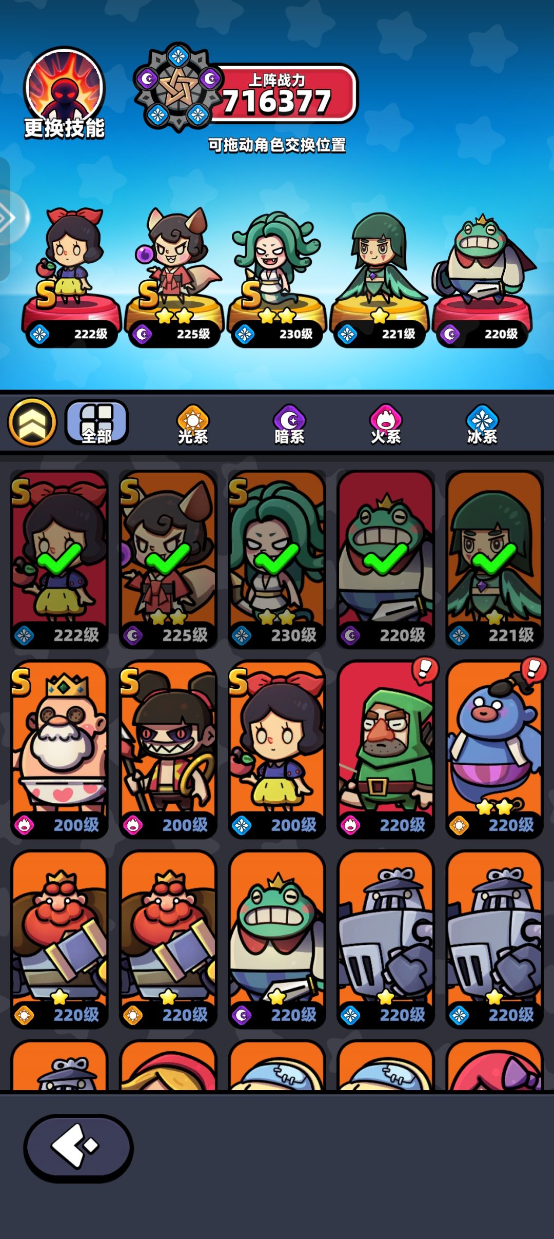 先声明本人花了6r首冲+30r免广告,约等于零氪,为了体验感更好,懂得都懂。 很多新人包括我开始玩乱花钻石乱花金币导致英雄等级跟不上推图进度落后太多。这里给零氪或微氪新人一些小建议,全是干货: 1、开局首次50抽英雄推荐海妖女皇,妲己,吸血鬼,个人觉得女皇优先级最高,前期很猛 2、前21章全部优先普攻,推图效率比大招高太多。前提是最好有女皇和妲己。优先普攻满级 3、前期输出1-2个即可,上一个战士