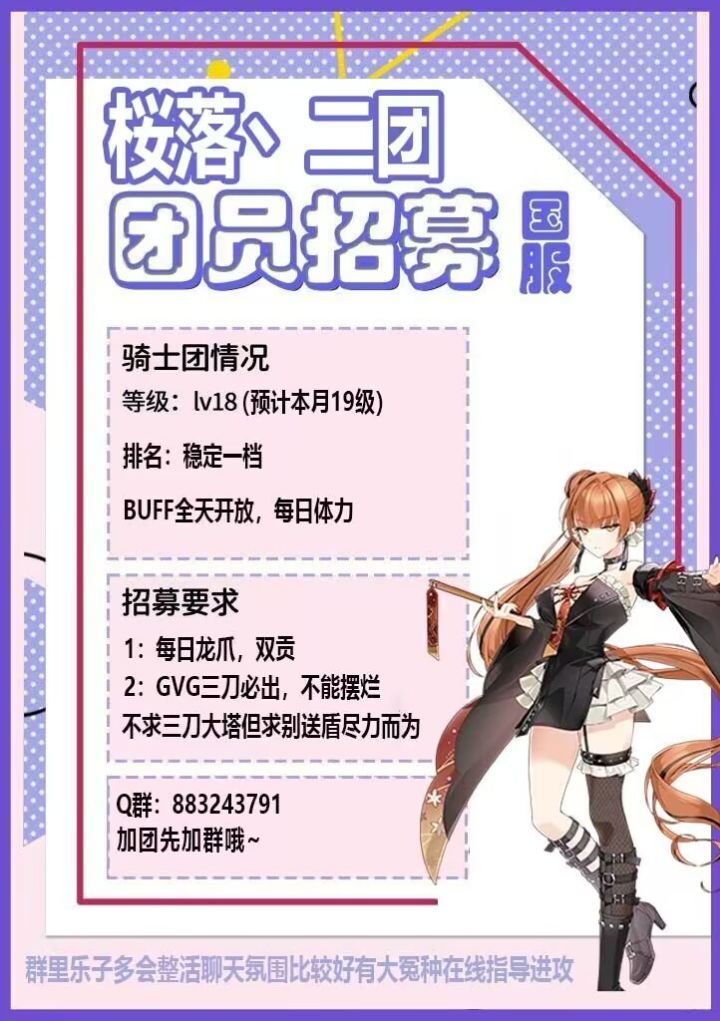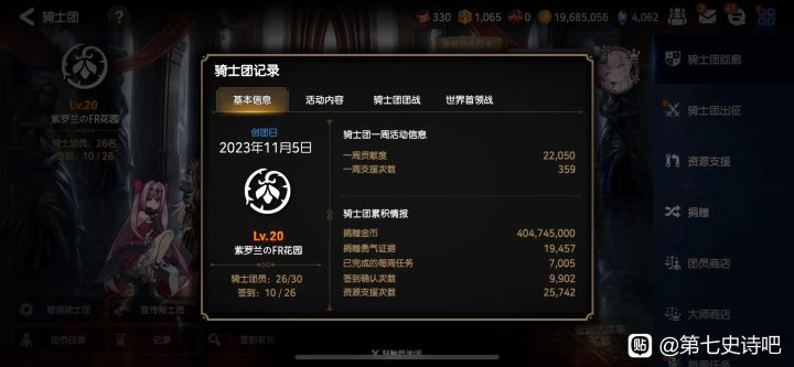 三档活跃团紫罗兰招活跃玩家(不招新手)群内有百里机器人,🐧群:895370832要求先进群后进团,群内氛围很好。每周团战出出刀,现在是三档团,但是金子到哪里都会发光,而你就是闪闪发光的金子,希望长期活跃的玩家能赏个脸来共同前进,感谢加入。 #第七史诗 #第七史诗公会 #第七史诗攻略
