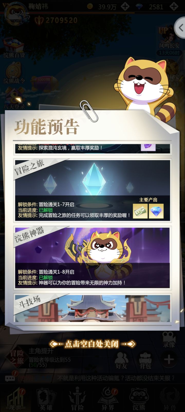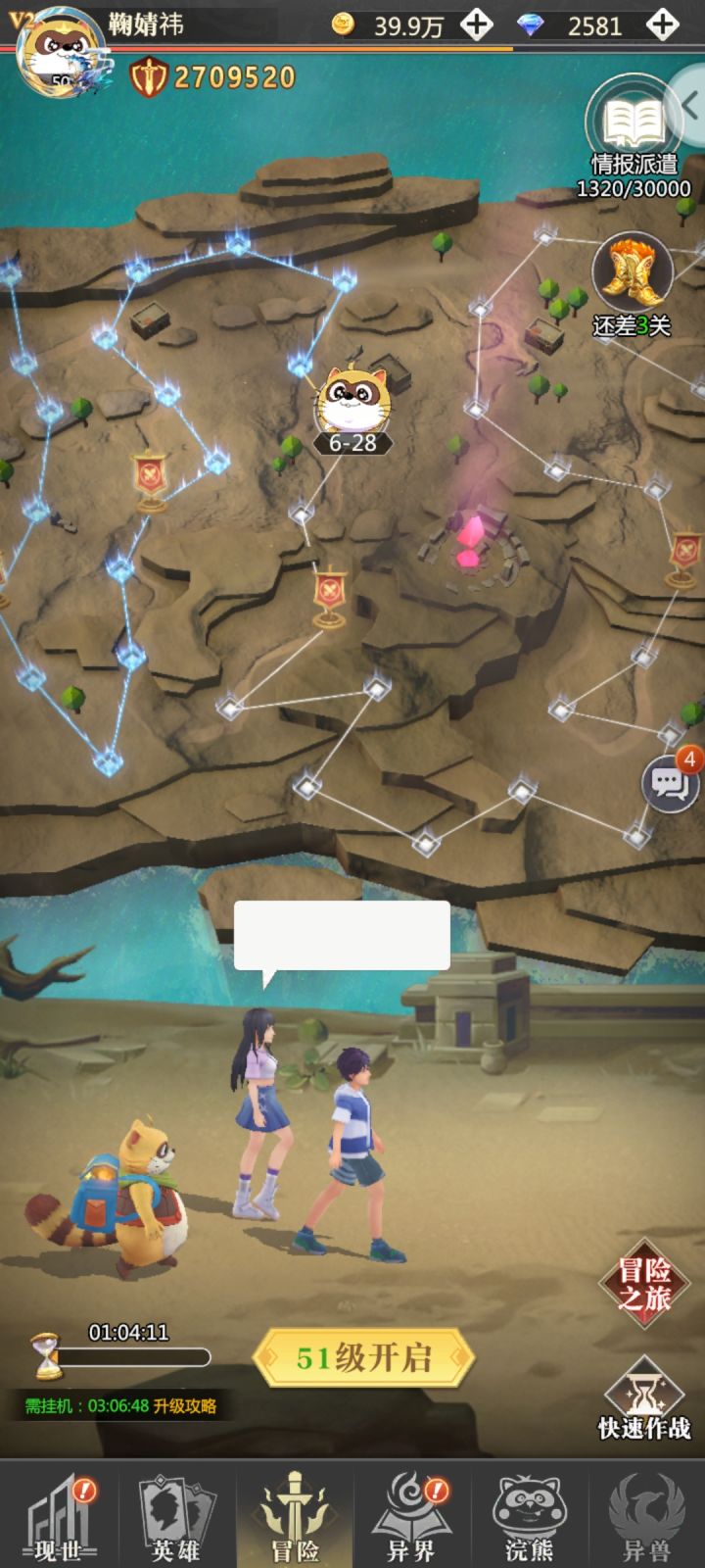 希望大家喜欢,有不懂的不会的可以一起讨教,我经过两次内测的洗礼,已经大致摸清楚了游戏的基本规则和套路,可以拿出来给大家分享游戏体会。#第一 ,冒险之旅,这个不难但是这个是游戏的最主要功能,看图,提升玩家的冒险等级。方法:1.挂机(必须的),2.快速作战,有几次免费机会,但是想提高更快,强烈建议点满,因为这是游戏的主要功能,特别重要。3.为了让游戏更快发展,强烈建议购买专属订购,人民币30元半个月,