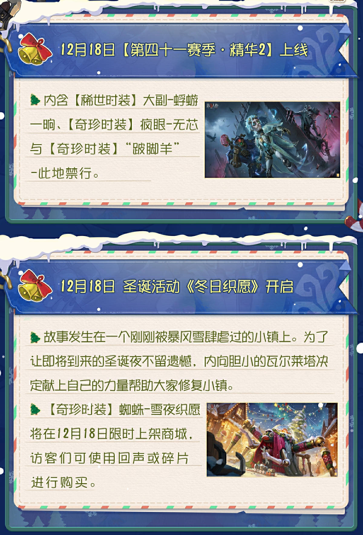12月日历送达!《昨日之笼》主线版本活动开放中,春节版本前瞻直播将于12月19日18点开启,各位访客敬请期待~#第五人格 #第五人格昨日之笼 #第五人格五骥映春