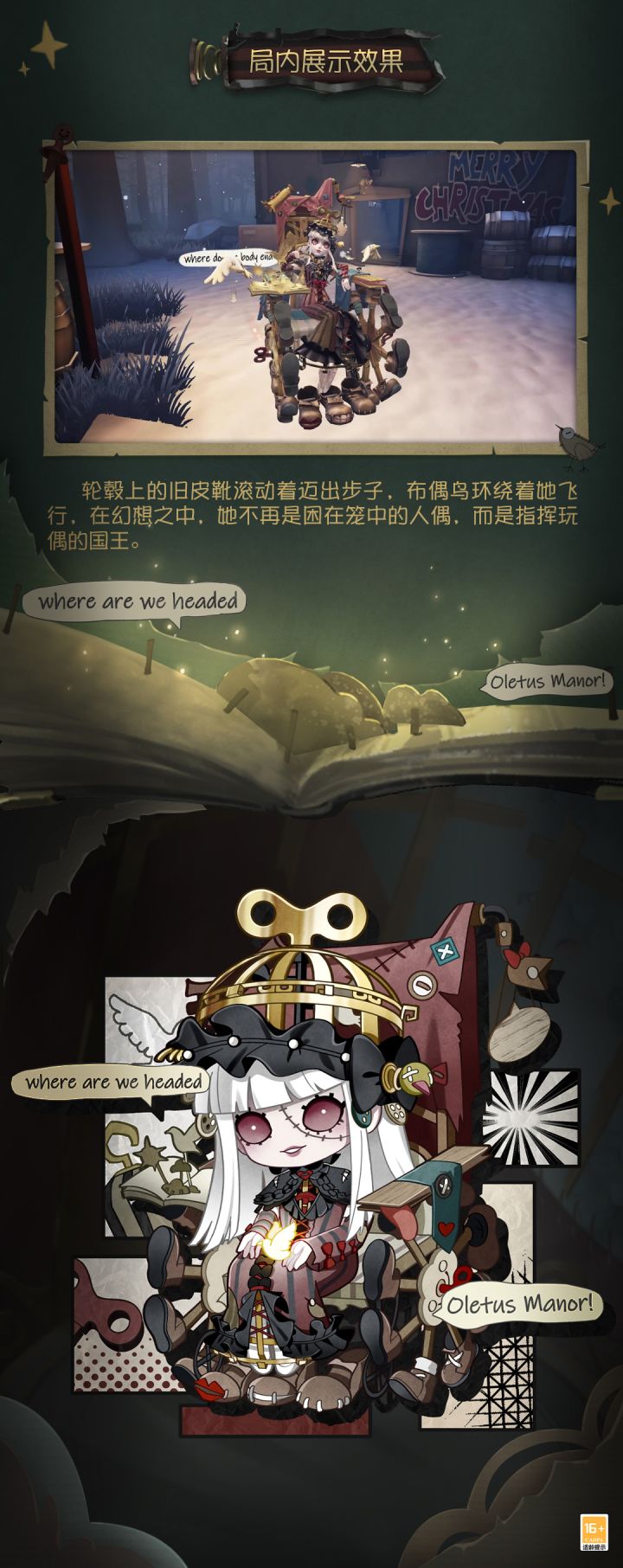 金笼子,晃呀晃。小皮鞋,锃光亮。小主人,说爱我。小主人,剪翅膀。鸟儿衔来钢铁芯,在他头上轻轻放。金丝笼,小皮靴,统统抛下追月亮。旧阁楼,叮叮当,你猜谁在摇铃铛? 点击视频,即可了解怪念集系列 【稀世时装】雕刻家-笼中偶的游戏内效果展示~ #第五人格昨日之笼 #第五人格怪念集系列 #第五人格