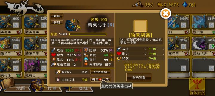 这些英雄很强力,这个阵容也很不错--来自玩家EF3596 抓到一只极品属性精弓,等明天弓团二转后就给它转了。 精弓对boss的实战输出非常恐怖,玩弓团的要抓还是趁早,给精弓刷级比较麻烦,建议优先以远攻为主,没银弩之前像幸运这些天赋对精工来说都根本打不着人,就算能打着也是在危险范围内。 等零点一过,弓团就二转了,对阵6图boss的能力可以大幅度的得到提振了,兄弟们明天见。#策略军团精彩分享 #