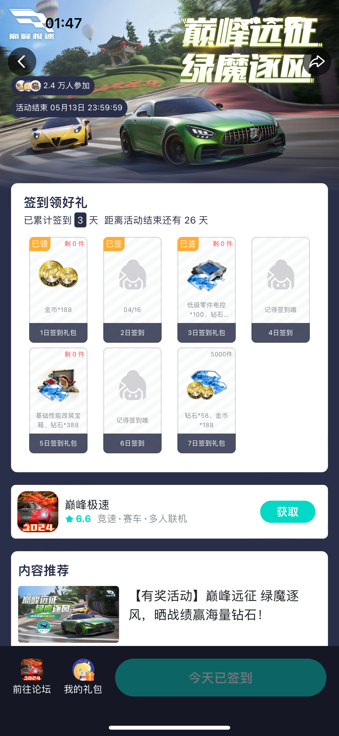记得签到哦!五月第二期福利签到活动上线!