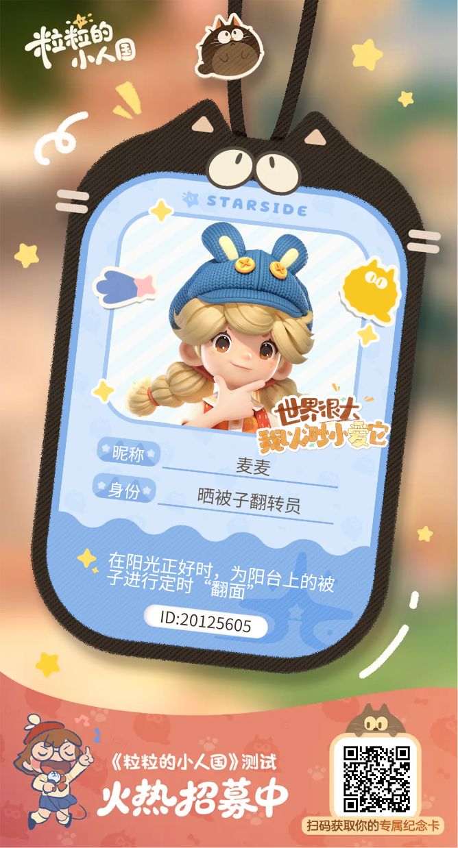 尊敬的《粒粒的小人国》官方团队: 您好!我是一名深度模拟经营玩家,尤其喜欢‘微观世界+小人互动’的创意设定,贵游的画风和‘培育小人、搭建家园’的核心玩法完全戳中我的兴趣点。 得知正在招募内测玩家,我特别希望能参与其中:一方面能提前体验期待已久的游戏,另一方面我会以客观玩家视角,详细记录游玩中的体验感受(如操作流畅度、内容丰富度),及时反馈遇到的问题和优化想法,为游戏的完善出一份力。 恳请给予