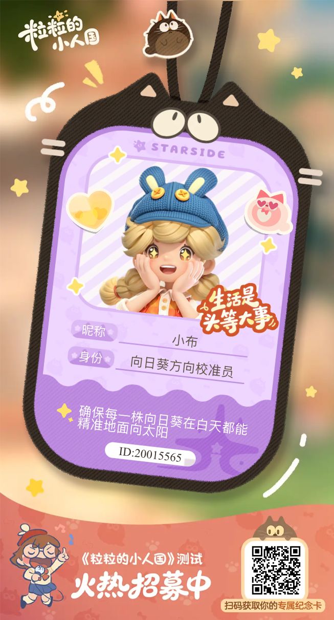 粒粒的小人国内测资格申请书 尊敬的《粒粒的小人国》官方测试评审团队: 您好!自2025年9月游戏全平台首曝,我便被这款游戏独有的皮克斯绘本风治愈画面、微观世界的创新设定深深吸引,从第一时间完成TapTap预约,到持续追踪社交媒体的每一次动态更新,始终对这个藏在日常角落的“摇粒乡”满怀期待。现特此诚挚提交内测资格申请,希望能成为首批微观世界探索者,以玩家的视角为游戏的优化与打磨贡献自己的一份