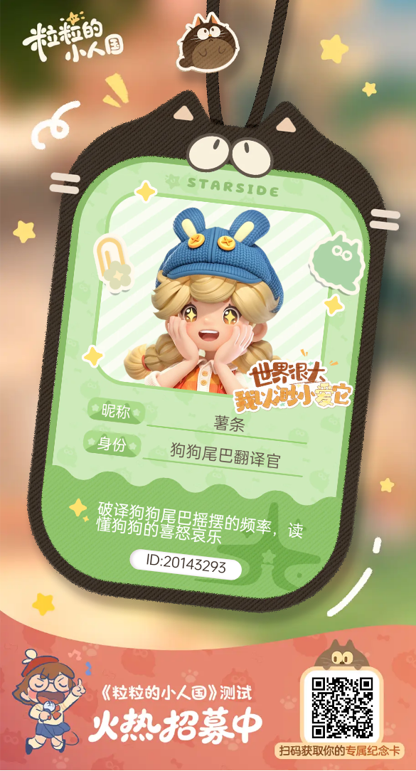 尊敬的《粒粒的小人国》官方测试评审团队: 您好!自2025年9月游戏全平台首曝起,我便被这款游戏独有的皮克斯绘本风治愈画面和微观视角探索日常的创新设定深深吸引,第一时间完成了TapTap全平台预约,始终密切追踪游戏的每一次动态更新,对“日常小物改造家园”“与粒粒趣味互动”的核心玩法满怀期待,现特此提交「安家测试」内测资格申请,希望能成为首批体验者,为游戏优化贡献自己的一份力量。#粒粒的小人国
