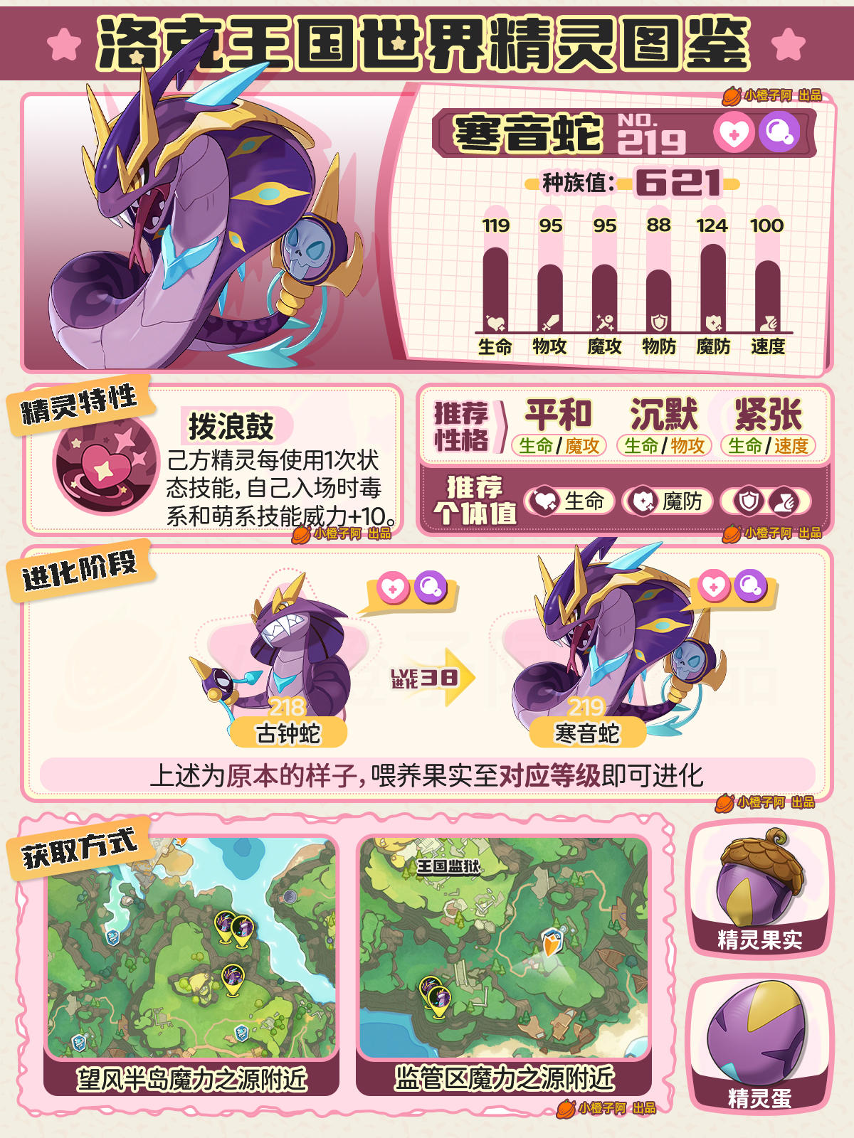 哈喽喽,这里是小橙子环游记~这是《洛克王国:世界》三测精灵图鉴攻略,由于每篇文章最多放18张图,因此这次是217迷迷箱怪到255帕帕斯卡的精灵图鉴。观前提示:①精灵数量比较庞大,数据可能存在一些问题,小伙伴们可以在评论区提出来,我进行慢慢修正。②图鉴性格、个体值并不是唯一,由于精灵配队多种多样,推荐的性格与个体值会出现差别,有可能橙子图鉴中并没有出现,小伙伴同样可在评论区提出来,橙子会根据