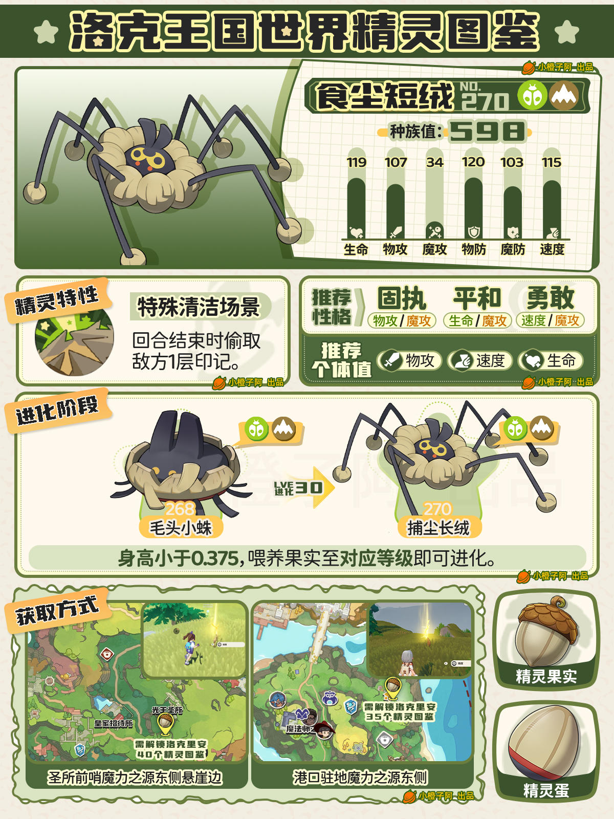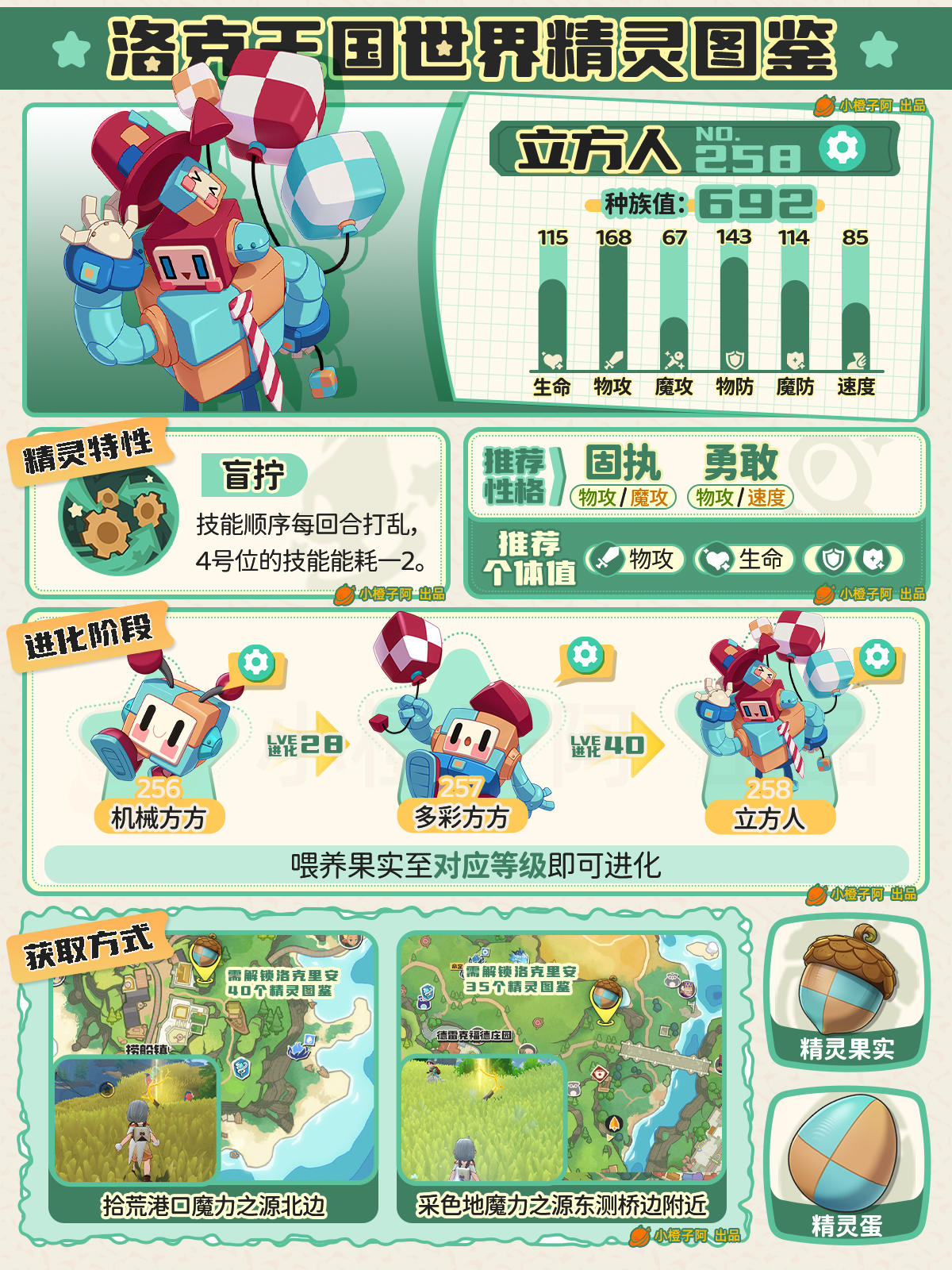 哈喽喽,这里是小橙子环游记~这是《洛克王国:世界》三测精灵图鉴攻略,由于每篇文章最多放18张图,因此这次是258立方人到292泥吼牙的精灵图鉴。观前提示:①精灵数量比较庞大,数据可能存在一些问题,小伙伴们可以在评论区提出来,我进行慢慢修正。②图鉴性格、个体值并不是唯一,由于精灵配队多种多样,推荐的性格与个体值会出现差别,有可能橙子图鉴中并没有出现,小伙伴同样可在评论区提出来,橙子会根据现实