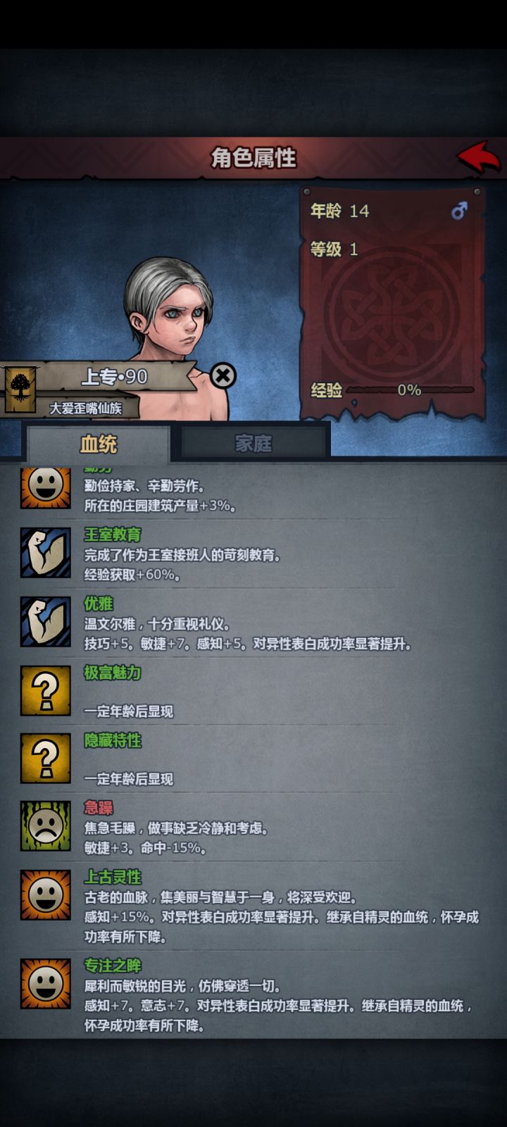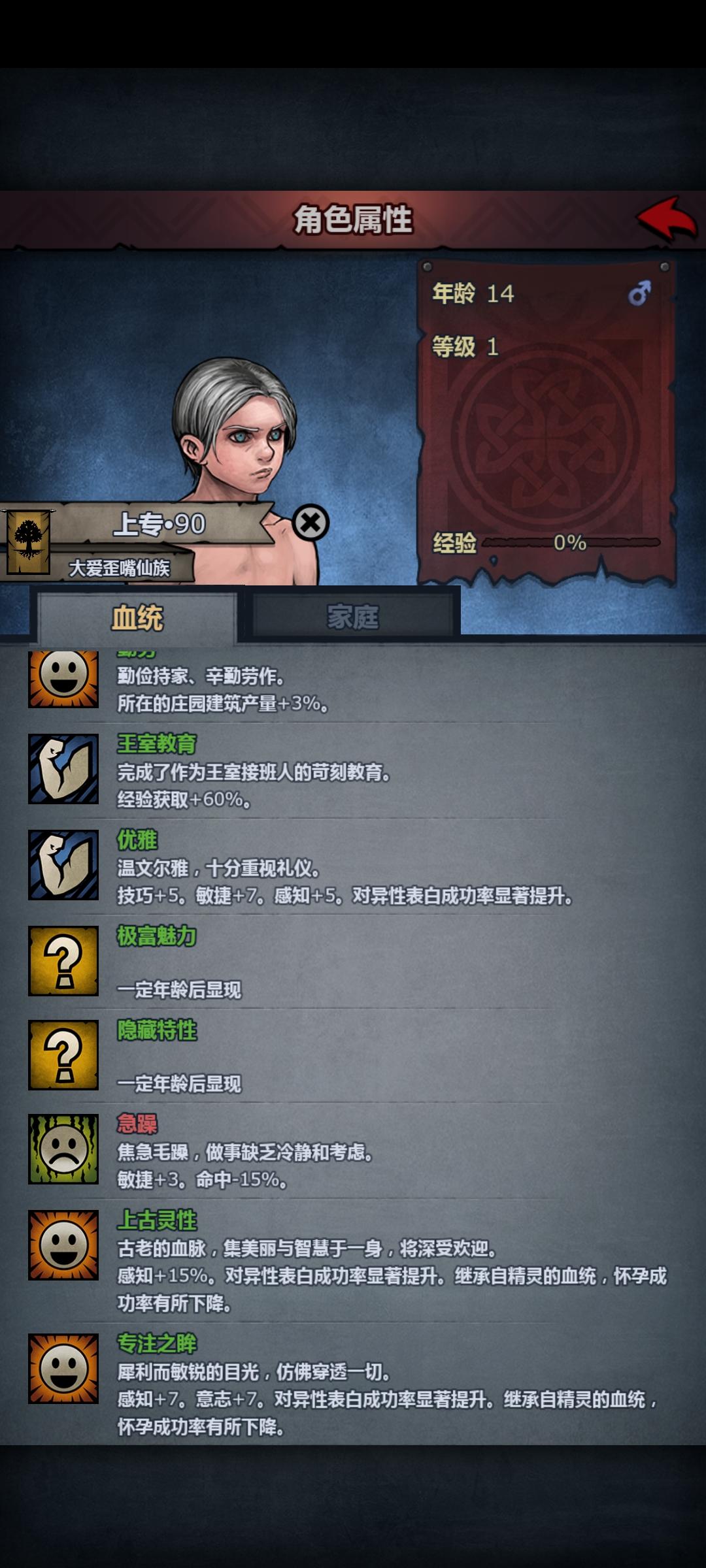新手第一只上自专公爵,打算大展宏图,狂配种,稳定上自专之后就可以安稳躺平了,夭折了。第二只上自专公爵,庇护之后开始找对象,从15岁每年联姻36个对象,一直到32岁,整整17年600多个人,只有一个上古,还带禁欲负面buff,我真不知道策划在想什么,一打开联姻,全是绿毛龟,不能出个精灵专属联姻吗?真的很打消配种热情。再说那个宴会开四五次,花销巨大,死贵,一打开精灵宴会,好多绿毛,偶尔一两个精灵,不带