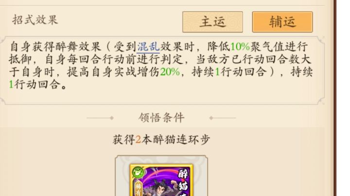 首先这里感谢群里玉米老哥的实验实战,测试了一两个月,让我知道了这个招式的作用和强大之处,先看招式效果只讨论辅位,注意这个不是必须得混乱了才20增伤,是分开判定的,只要对面回合数高于我们就有40概率20增伤,这不就是小兵来将挡吗 调和拳前三手都是在防御,拉条也不是特别多,那么除了阴拳阴奇这些比我们慢的(你们不会也上这个醉舞吧),就算我们先手,对面回合数大概率比我们多 那么我们后三武学的爆发就很