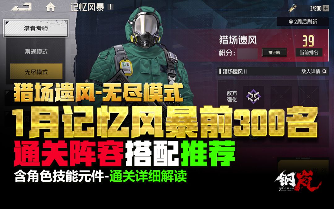 钢岚《1月份记忆风暴-猎场遗风-无尽模式·前300名·阵容》