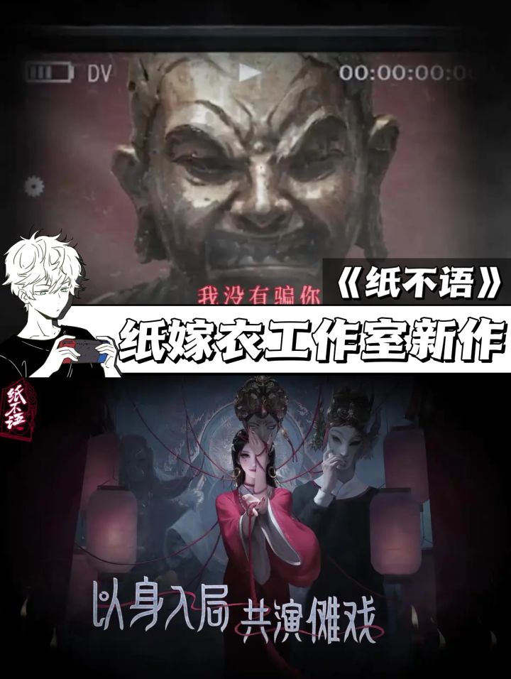 纸嫁衣工作室公布新作《纸不语》以身入局,共演傩戏。发售日待定,登陆iOS/安卓平台。金铃鸣,故梦起,山海旧梦,傩面不语,徘徊局中谜。伴着古老歌谣走来的傩面怪人,似乎在迎接谁的归来……迷雾中爱人的温温细语,能否实现永远在一起的承诺呢?熟悉的傩面,踏入的迷局,爱人的低语,一遍又一遍诉说着永恒誓言。一个名为《纸不语》的中式奇谭世界,一个以傩为主题的志怪故事,不可言说的诡秘之事轮番上演,你又会作