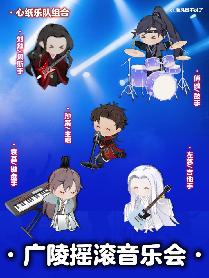 为了拯救广陵,所以选择成为偶像!✨又名《当爱豆的经纪人是种什么体验》🤟为了提高📈广陵的gdp水平,打响在东汉的知名度……殿下集结了5位性格各异的美男组织了乐队~————📺并不是一场孤独的摇滚,而是艺术的交流与碰撞💥!!!————🥁初台首秀!大家都是激动的~到场的各位多多支持✊……更多才艺也在练习ing,fire,gogogo!!!🉑无料/素材/立牌/挂件……(⚠️注:素材版权属