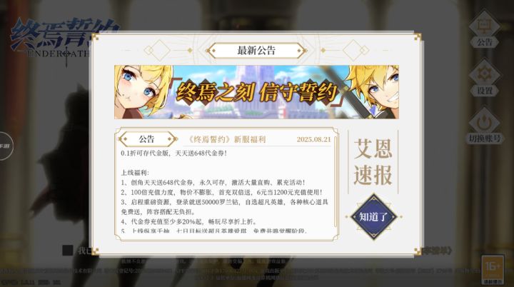 真的很喜欢这个游戏的ui设计…时隔两年又看到0.1折,感动…之前怎么挂的都不知道,拜托别死#终焉誓约