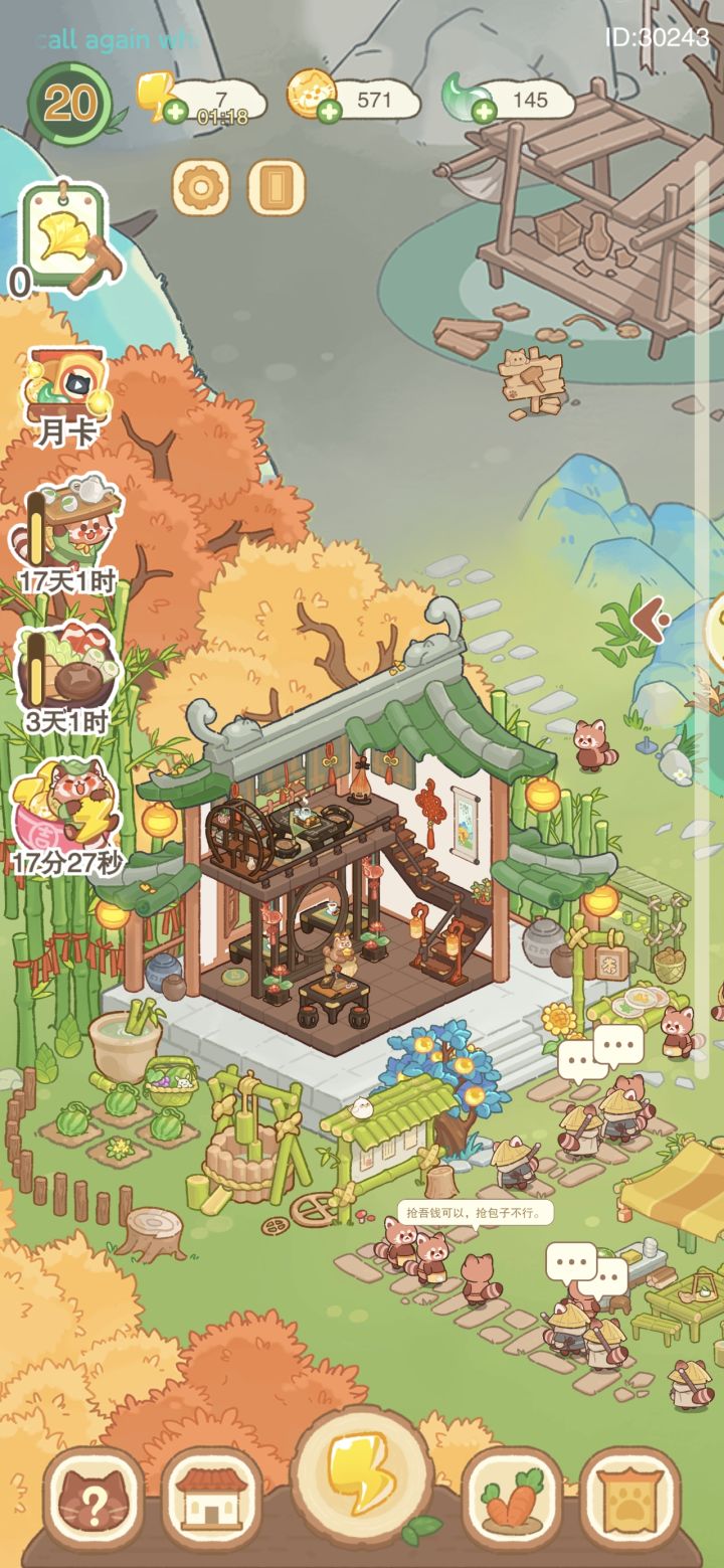 #结伴银杏山 嘿嘿终于建好房子了,房屋上多了一个小动物(˃ ⌑ ˂ഃ ),还会挥刀法耶#结伴银杏山 啊啊啊啊,我的天哪,才发现这两能获得的花朵数量竟然不一样,天塌了(⋟﹏⋞) 有只小熊吃的竹笋味包子太多!拉肚子了。鹅~鹅~鹅~还有去采蜂蜜眼睛被蜜蜂蛰的啊,那个尾玉直接给我看心动了