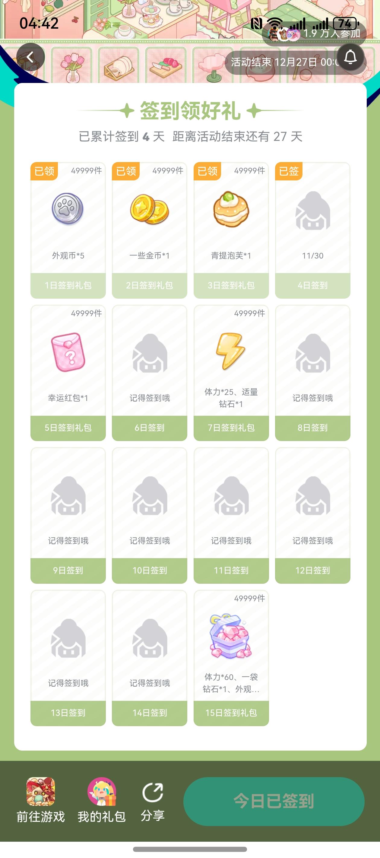 连着签15天只有六天给东西,##绘梦日记兑换码 #绘梦日记公测 真是让人开眼了,绘梦在让人失望这件事上从未让人失望