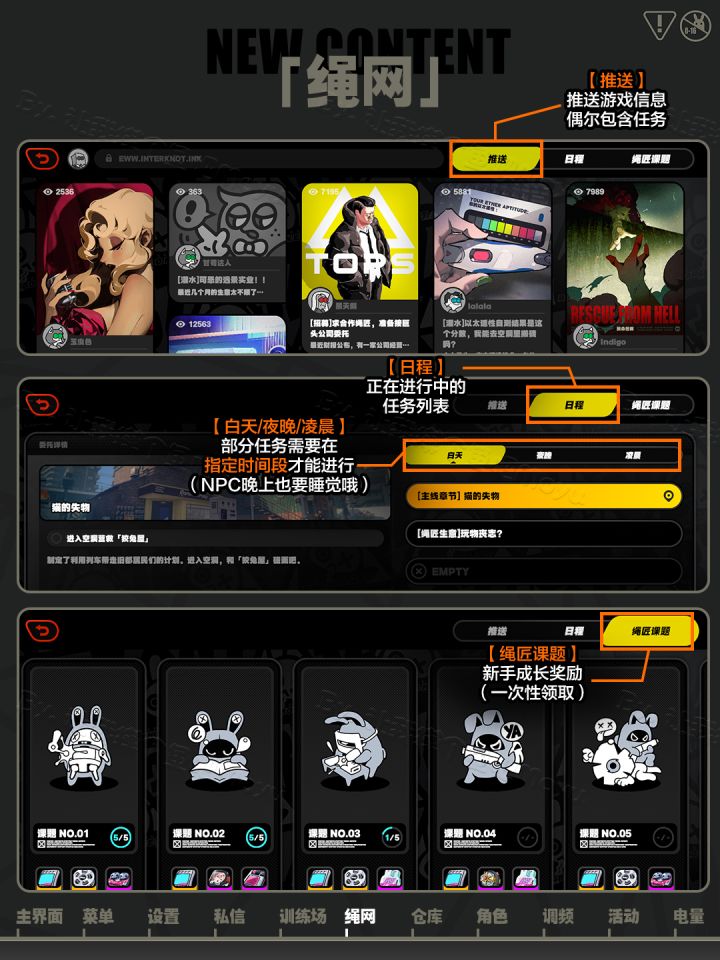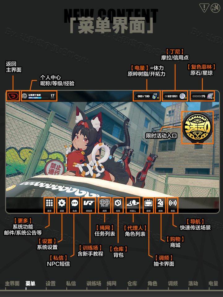 【绝区零攻略】大全 第三篇 已更新。想要开服不迷路的,速速前来蹲蹲资讯吧! 第一章 萌新必看基础篇③ 界面功能界面 第一章还剩下一个任务的接取和完成就正式阶段性完成了。 第二章为空洞篇。 萌新们可以提前蹲蹲资讯,开服就能更快上手了!#我的游戏日记Vol.4#绝区零#绝区零二测资格#绝区零降噪测试#绝区零测试#绝区零二测