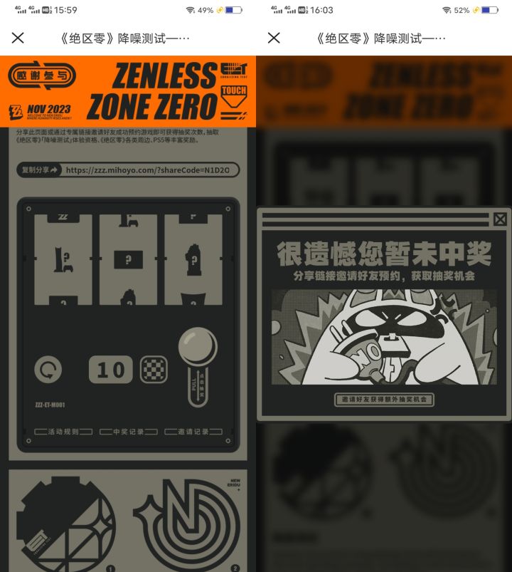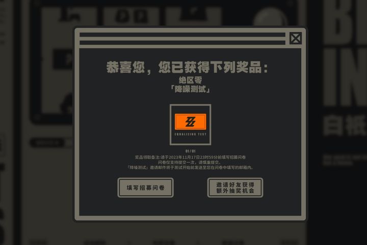 米哈游全新动作游戏《绝区零》「降噪测试」现已开启招募!前往参与活动,有机会获得测试资格、实物周边等奖励!https://zzz.mihoyo.com/?shareCode=N15Q3KR1XN#绝区零二测资格
